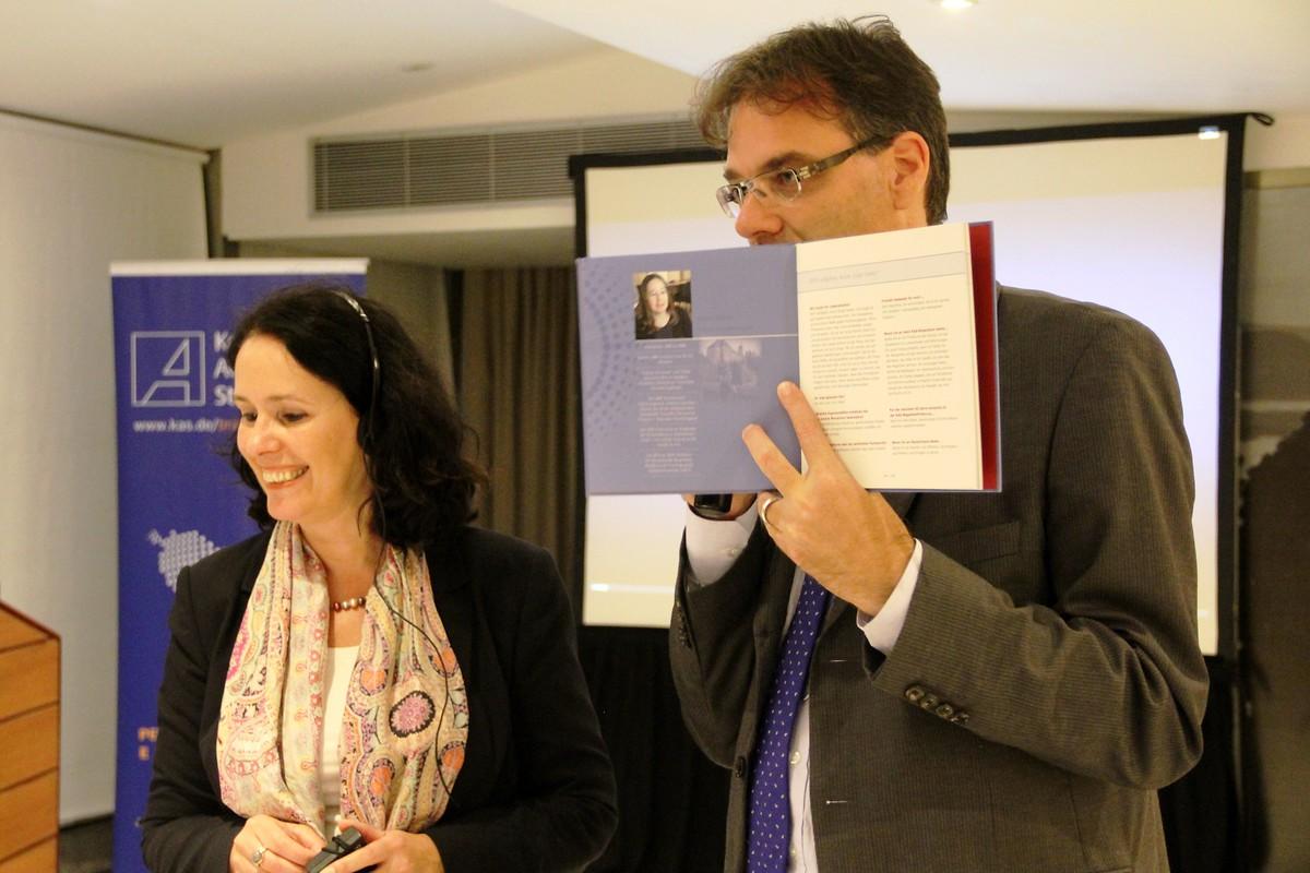 A deputada também debateu com um parceiro de longa data da KAS sobre a importância da formação política para jovens em um país, no qual as escolas não transmitem nenhuma educação política. A deputada ainda trocou ideias sobre as chances e os desafios do novo governo, em conversas mantidas com parlamentares brasileiros, entre os quais se podem citar o senador José Agripino, presidente dos Democratas, o deputado Felipe Maia, membro tanto da Comissão de Constituição e Justiça e de Cidadania quanto da Comissão de Defesa do Consumidor na Câmara Federal, e Pauderney Avelino, líder dos Democratas na Câmara Federal.