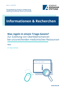 - Aller Voraussicht nach würden sich die gesetzlichen Beratungen über ein Triage-Gesetz ohnehin ext-rem schwierig gestalten. Es wäre wenig hilfreich, sie zusätzlich mit einer fragwürdigen Vorzugsrege-lung für systemrelevante Berufe nach der Devise „rettet die Retter“ zu belasten.