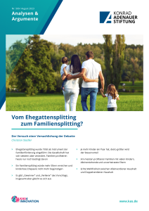Dabei gilt es zu beachten, dass der Schutz von Ehe und Familie im Grundgesetz angelegt ist. Änderungen dürfen nicht zulasten von Familien gehen. Eine einfache Abschaffung – also ersatzlose Streichung – des Ehegattensplittings, wie sie kürzlich von Teilen der Politik gefordert wurde, würde diesem Grundsatz widersprechen. Es gilt Alternativen zu finden, die besser an die Lebenssituation vieler Familien (ohne Trauschein) und von Alleinerziehenden angepasst sind.