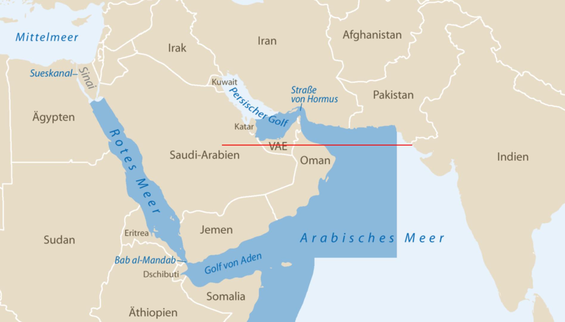 Die ökonomischen Auswirkungen der Huthi-Angriffe auf den Schiffsverkehr im Roten Meer und Golf von Aden sind enorm. Die hier auf dem Meeresgrund verlegten Unterseekabel stellen nicht nur die Infrastruktur für fast ein Fünftel des weltweiten Internetverkehrs bereit,[1] auch verlief bis vor Beginn der Angriffe zwölf Prozent des Welthandels über die Schifffahrtsroute durch die Bab al-Mandab Meerenge und den Suezkanal. Europa bezog sogar 99 Prozent der Containerimporte von seinem wichtigsten Handelspartner China über das Rote Meer.[2] Daher ist Europa von der Stabilität in der Region wirtschaftlich stärker abhängig als die USA und somit aktuell besonders betroffen. Seit Beginn des Ukrainekriegs stieg zudem die Energieabhängigkeit Europas von den Golf-Staaten deren Öl- und Gaslieferungen teilweise durch die Wasserwege vor dem Jemen laufen. Der durch die Huthi-Angriffe erzwungene bis zu 6.000 Kilometer lange Umweg für die Schifffahrt über das südafrikanische Kap der Guten Hoffnung und weiter entlang der westafrikanischen Küste führt zu einer Verdoppelung bis Verdreifachung der Transportkosten, die im Schnitt zwei Prozent zusätzliche Preisinflation in der EU bedeutet. Nach Angaben des Europäischen Auswärtigen Dienstes entstehen für die Weltwirtschaft dadurch zusätzliche Kosten von 360 Millionen Euro pro Stunde. Die längeren oder teilweise ganz unterbrochenen Lieferketten führten zeitweise zu Produktionsstopps in Europa, so auch bei Suzuki in Ungarn, Volvo in Gent und beim Tesla-Werk im brandenburgischen Grünheide.