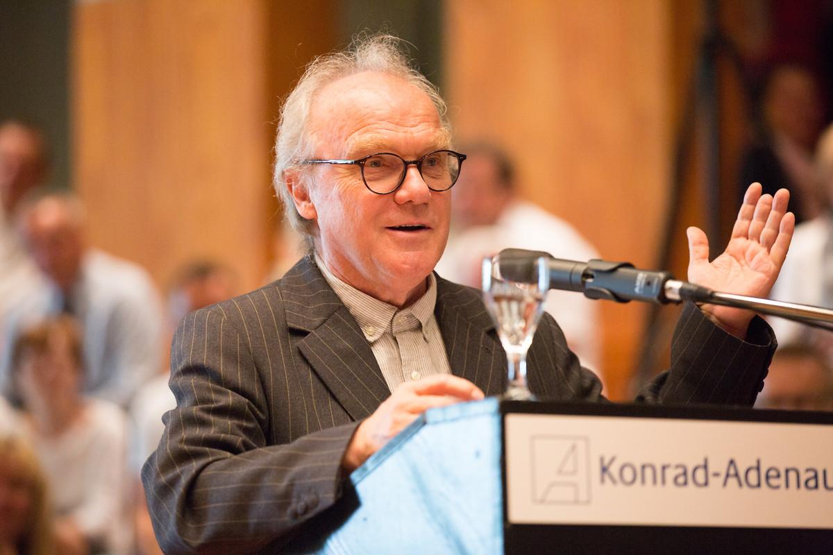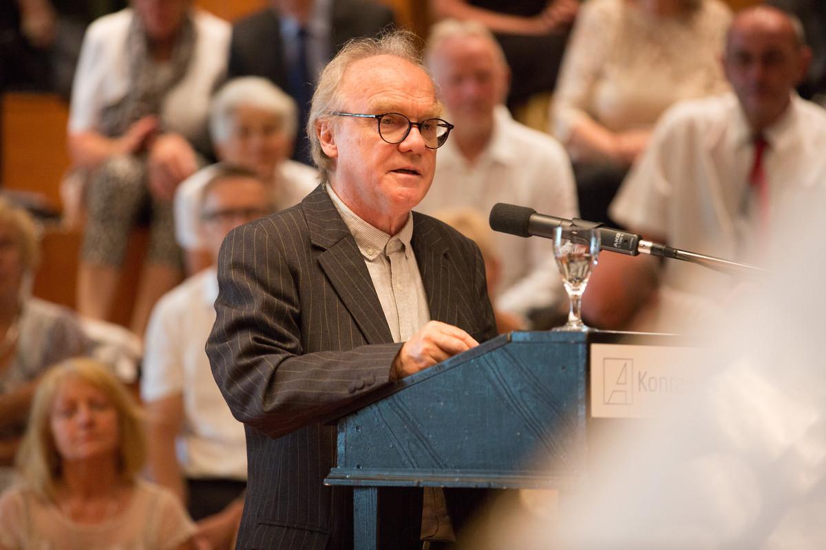 Zuvor ging Dr. Hans-Gert Pöttering, ehemaliger Präsident des Europäischen Parlaments und Vorsitzender der Konrad-Adenauer-Stiftung, auf das diesjährige Jubiläum der Verleihung ein. Zum 25. Mal wurde nun in Weimar der Literaturpreis der Stiftung verliehen. In den vergangenen Jahren habe die ausgezeichnete Riege der Literaten und Laudatoren „den Preis zu dem gemacht, was er heute ist“. Pöttering zeigte sich erfreut, dass der „Preis ein stabiles und markantes Profil“ habe und ein Publikum aus Deutschland und den Nachbarstaaten jährlich ziehe.