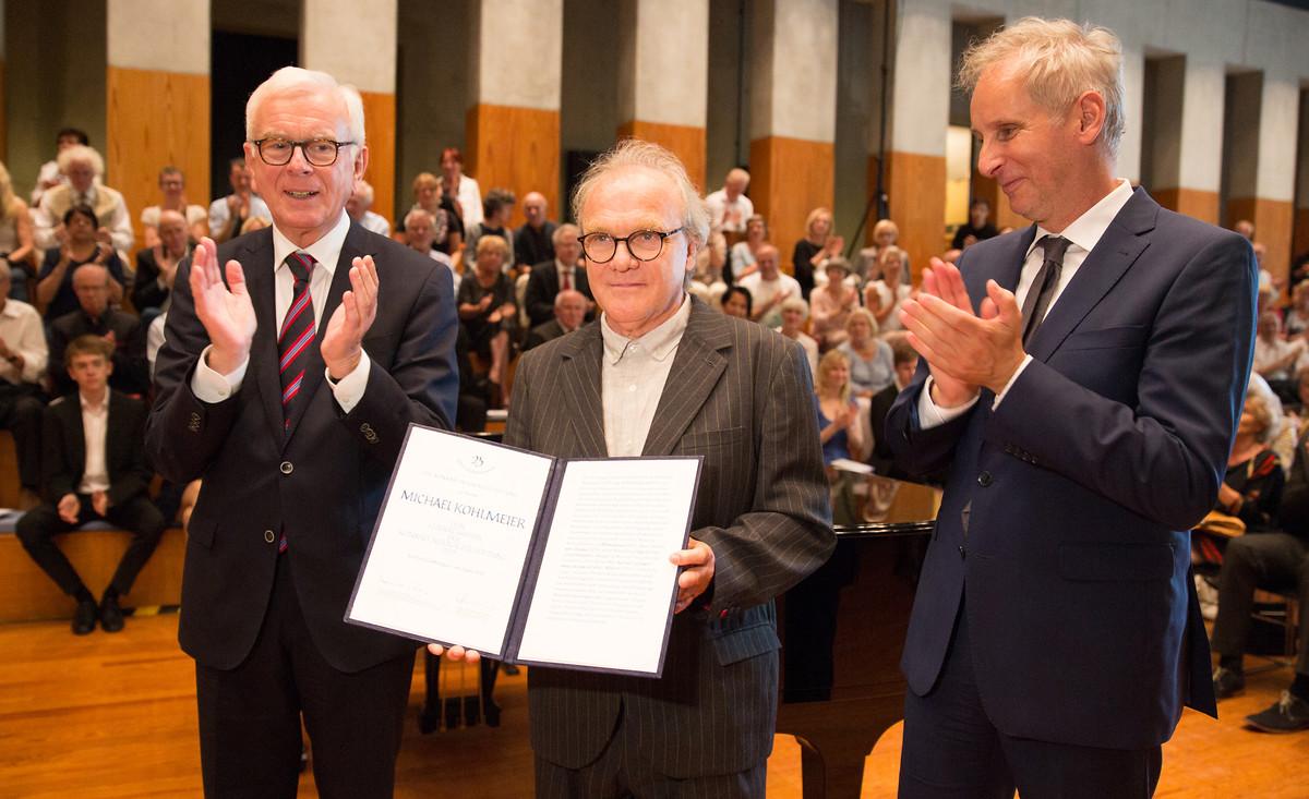 Der Preisträger, Michael Köhlmeier, bedankte sich für die Auszeichnung bei der Konrad-Adenauer-Stiftung und erinnerte erzählerisch in seiner Dankesrede an seinen verstorbenen Vater, der ebenfalls Schriftsteller war und sehr akribisch Fakten als Grundlage für seine Werke nutzte. Mit warmer, den Hörer fesselnder Stimme beschrieb Köhlmeier in seiner Rede die beiden unterschiedlichen Schreibstile in Form von Anekdoten. Als sein Vater die Entdeckung des Erzählstoffs über Pontius Pilatus machte, kam es zu einer Annäherung. „Mein Plädoyer für die von allen historischen Gegebenheiten befreite Fantasie, obwohl er stets dagegengehalten hatte, war doch irgendwie in ihm wirksam gewesen.“ Er erkannte, dass „aus purer, noch so seriöser Recherche und aus einem nach allen Seiten abgesichertem historischen Stoff allein noch kein Roman zu schmieden sei.“ Jedes Ereignis in der Historie werde unterschiedlich beschrieben und unterschiedlich für „wahr“genommen. Am Ende wurde beiden bewusst, dass „das Finden wohl oder übel auch erfunden werde müsse.“