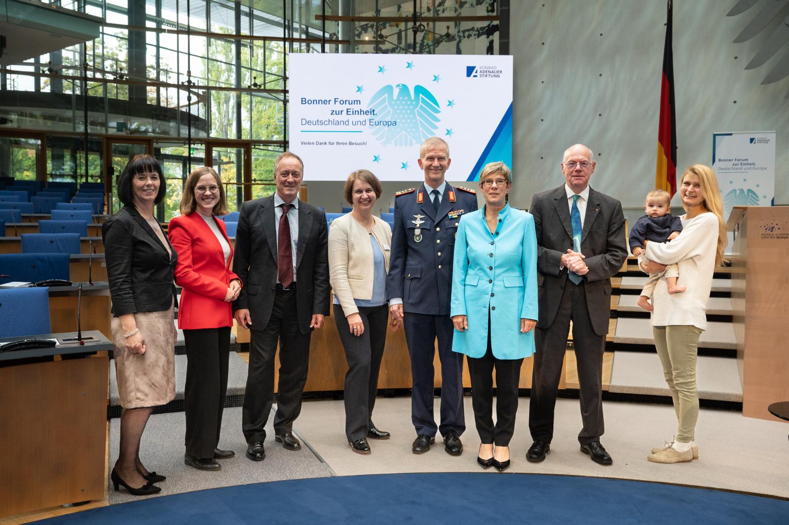 In ihrem Schlusswort griff Dr. Melanie Piepenschneider, Leiterin der Politischen Bildung der Konrad-Adenauer-Stiftung, auf einen Gedanken Helmut Kohls zurück, dessen Einheitswerk schließlich diesen Feiertag ermöglichte: Kohl vertrat immer die Überzeugung, dass die Demokratie nach innen und nach außen wehrhaft bleiben müsse.