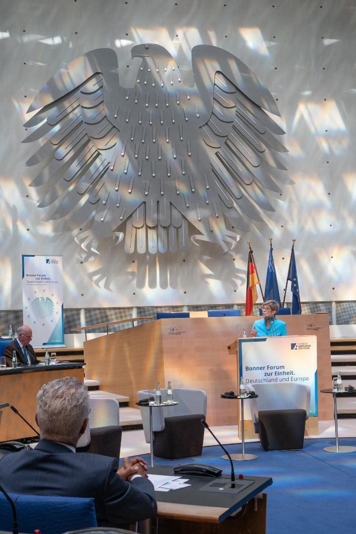 Das diesjährige Bonner Forum zur Einheit – traditionell im ehemaligen Plenarsaal des Deutschen Bundestages mit knapp 600 Teilnehmenden gut gefüllt und den unveränderten politischen Bürgersinn der alten Hauptstadt vor Augen führend – war keine reine „Feierstunde“ am Tag der Deutschen Einheit. Feiern ohne ein „Aber“ und ohne Verweis auf die beunruhigende Weltlage war dieses Jahr nicht möglich. „Die Zukunft des Westens“ steht auf der Tagesordnung, 2000 km weiter östlich wird sie herausgefordert.