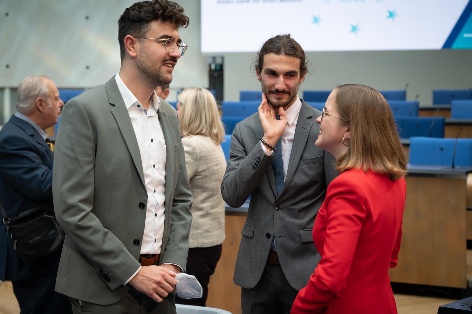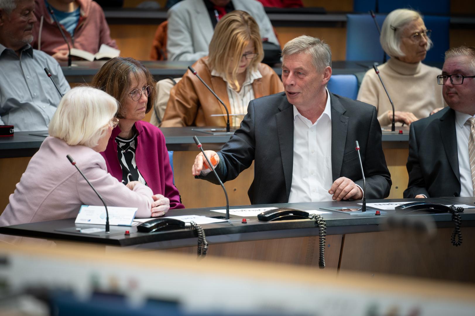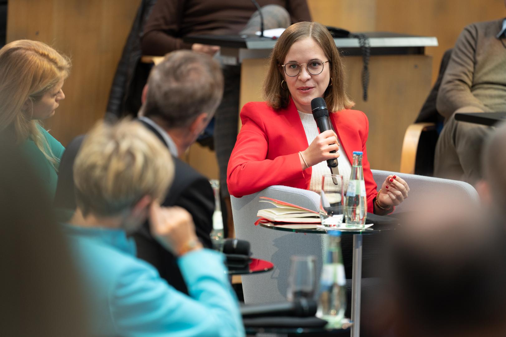 In der anschließenden, von Michael Krons moderierten Diskussion kamen Sicherheitsexpertinnen und ein ranghoher Bundeswehrgeneral dazu. Dr. Ulrike Franke vom European Council on Foreign Relations, Vanessa Vohs von der Universität der Bundeswehr und Generalleutnant Martin Schelleis, Inspekteur der Streitkräftebasis, konnten den allgemeinen Ausführungen konkrete Argumente an die Hand geben. Sie breiteten im Saal den Realismus aus, der vor der „Zeitenwende“ zu wenig erhört wurde: dass die Bundeswehr auch noch nach dem 100 Milliarden Programm einen stetigen Aufwuchs brauche (Schelleis), dass die deutsche Befindlichkeit und Zögerlichkeit in den USA und den mittelosteuropäischen Staaten zunehmend weniger verstanden werde (unisono alle), dass die EU in Verteidigungsfragen viel wolle, aber wenig vermöge (Franke), dass sogar Frankreich dem deutschen Nachbarn aufgrund seines Status als Parlamentsarmee kein entschlossenes Handeln zutraue (Schelleis). Es sei eine ganze Welt des politischen Denkens an ihr Ende gekommen, der Glaube an die Kraft internationalen Rechts und an Verträge, also der Glaube, der in Deutschland die frömmsten Anhänger hat. Vanessa Vohs hält dies für eine „naive Vorstellung“. Und im Hintergrund droht die neue Herausforderung China, das genauso rosarot betrachtet worden ist. Die Expertinnen und Schelleis empfinden diese Zeit als Zeit der Prüfung, in der sich entscheide, wie resilient und verteidigungsfähig der Westen sei.