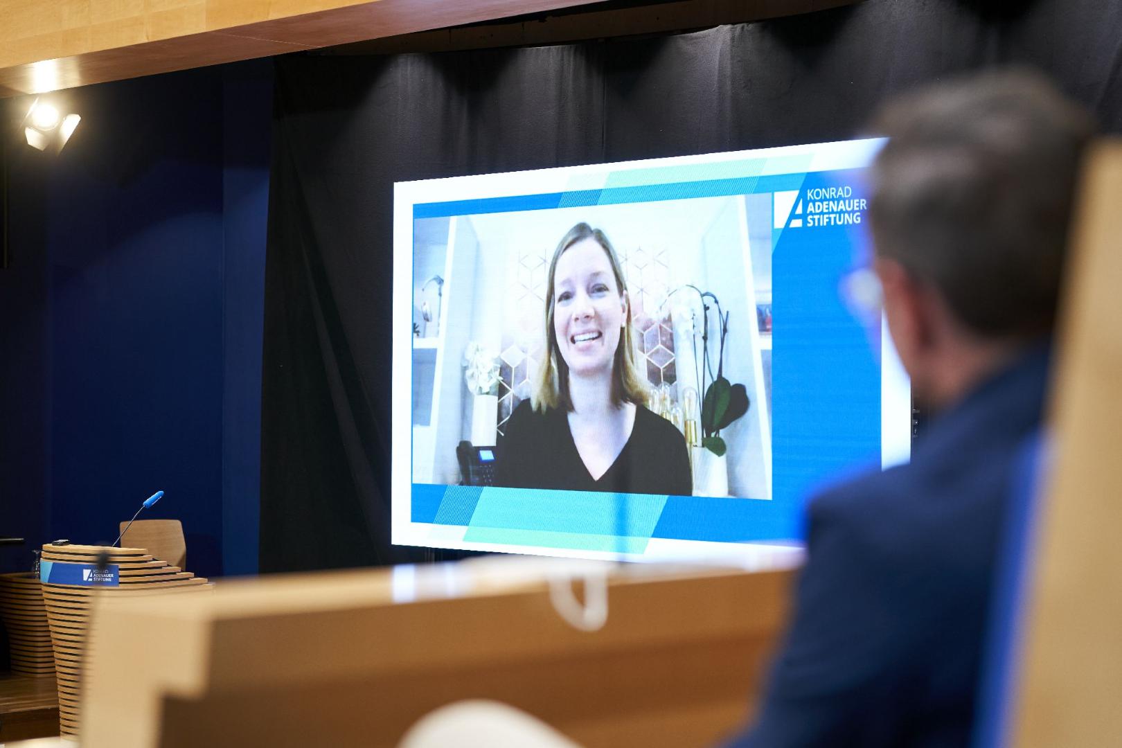 Nach der Mittagspause richtete sich der Blick auf die in 2022 anstehenden Wahlen in den USA und in Frankreich. Pascal Thibaut vom Radio France International stellte die potentiellen französischen Präsidentschaftskandidaten vor und wies insbesondere auf Eric Zemmour hin, mit dem das rechtspopulistische Lager einen weiteren starken Kandidaten ins Rennen schickt. Allerdings machte Thibaut ebenfalls deutlich, dass er eine Wiederwahl Macrons für den wahrscheinlichsten Ausgang der Wahlen hält. Im Anschluss sprach Kristen Soltis Anderson von Echelon Insights über die anstehenden Midterms in den USA und insbesondere über die Polarisierung der amerikanischen Gesellschaft. Dazu teilte sie eine Reihe von Beobachtungen: Die Gesellschaft sei nicht entlang unterschiedlicher Meinungen polarisiert, sondern weil man die andere Partei schlichtweg als Bedrohung ansehe. Da aufgrund der soziodemographischen Teilung des Landes kaum Orte für Begegnung zur Verfügung ständen, vertiefe sich die Ablehnung des politisch Andersdenkenden zu einer kaum überwindbaren Polarisierung.