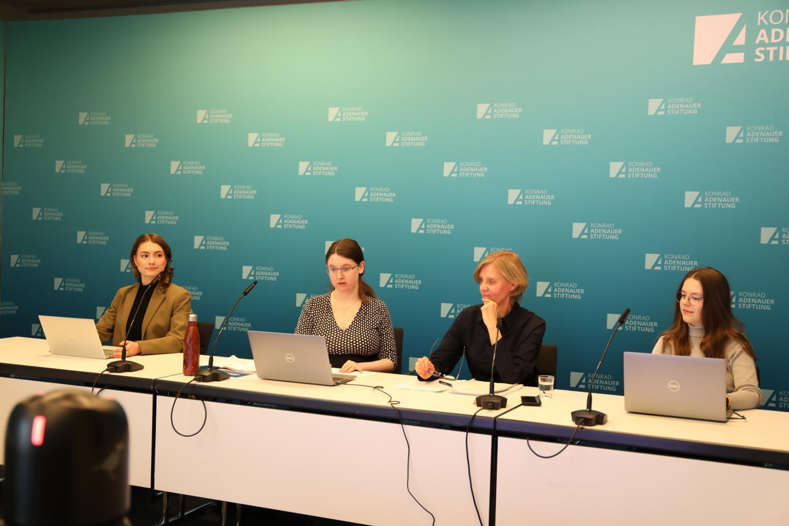 Natalie Klauser, Referentin für den Demografischen Wandel, und Lili Pöschl, Jurastudentin und Sprecherin des Jugendbeirats der Konrad-Adenauer-Stiftung, hielten das Schlusswort der Expertenrunde. Natalie Klauser betonte die politische Verantwortung des Staates für einen rechtssicheren Raum für Kinder und Jugendliche im Cyberspace. Lili Pöschl brachte ihre persönliche Perspektive ein. Für sie habe die Smartphone-Ära erst mit dem Eintritt ins Gymnasium begonnen: „Vor dem Smartphone habe ich viel mehr gelesen, konnte besser mit Langeweile umgehen, war geduldiger und konzentrierter. Wir alle wünschen uns für unsere Kinder eine Kindheit, an die wir uns gerne erinnern – voller echter Erlebnisse, Freundschaften und Entdeckungen. Kindheit ist sicher keine Zeit, die hauptsächlich mit endlosem Scrollen durch TikToks verbracht werden sollte.“