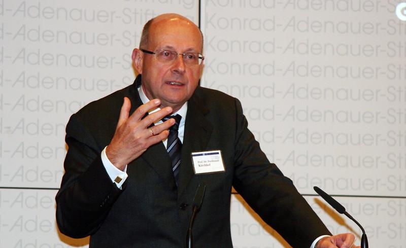 Vizepräsident Ferdinand Kirchhof beschäftigte sich vor allem mit der Sicherheitssituation im Inland. Das Bundesverfassungsgericht müsse die Freiheit schützen, dürfe dabei die Sicherheit aber nicht außer Acht lassen. Beides sei in Ausgleich zu bringen. Derzeit neige sich die Waage in der Öffentlichkeit zur Betonung von Sicherheit. Der Terrorismus sei im Inneren teilweise bereits erfolgreich, indem er Angst und Unsicherheit schaffe. „Terrorismus ist ein Angstmacher“, sagte Kirchhof. Doch dürfe Angst „nicht zum Schutzmaßstab werden.“