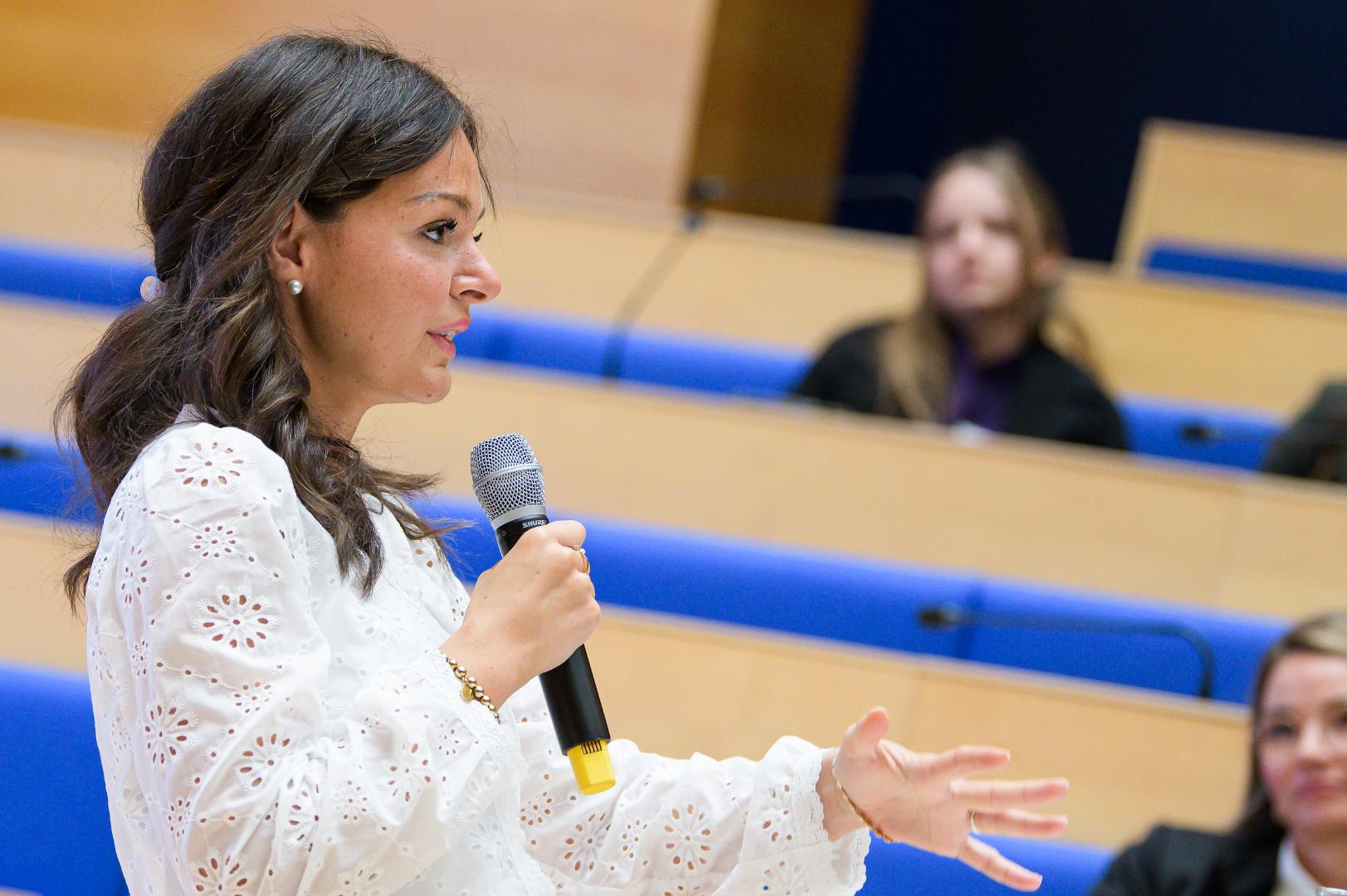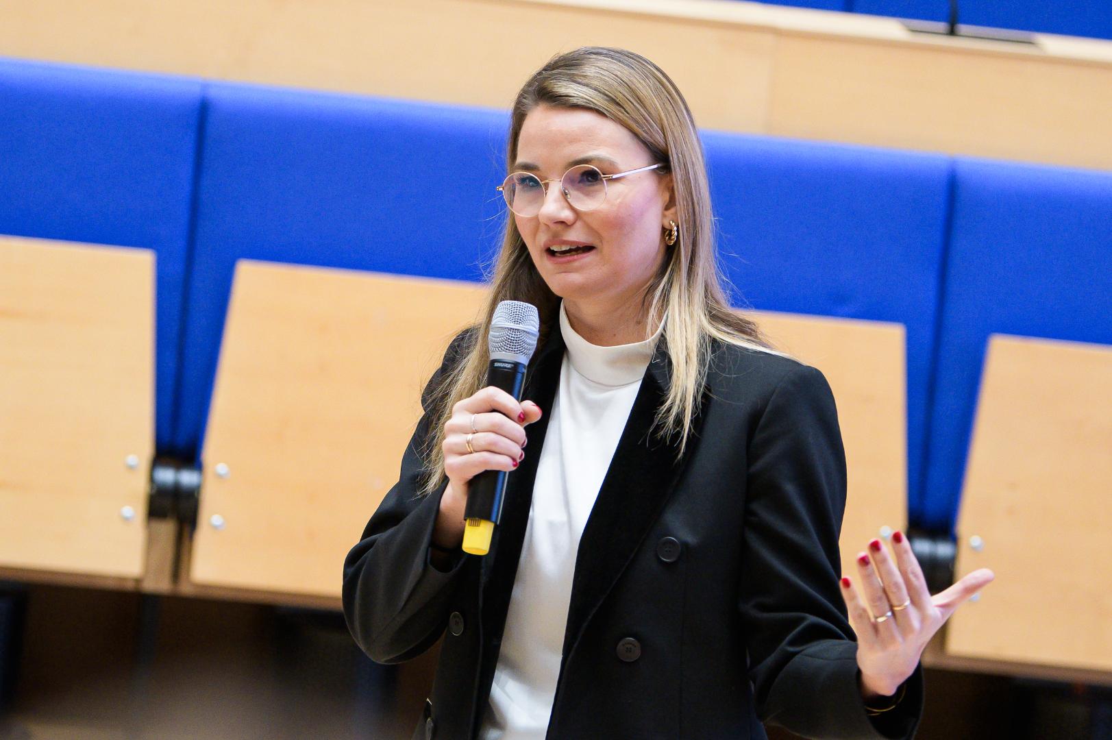 Den Auftakt machte der Programmpunkt „Lebensperspektiven in der Big Tech-Branche“, bei dem drei beeindruckende Frauen ihre persönlichen Geschichten teilten: Sabine Frank, Head of Government Affairs and Public Policy bei YouTube, Dr. Laura Hirvi, Public Policy Managerin (DACH) bei Meta, und Leila Rifahi, Abteilungsleiterin Social Media bei der CDU Deutschland. Sie sprachen offen über Chancen, Herausforderungen und ihre ganz eigenen Wege in die digitale Spitzenwelt. Dr. Hirvi machte Mut, sich auf Veränderung einzulassen – mit ihrer klaren Botschaft: „Be open for change.“