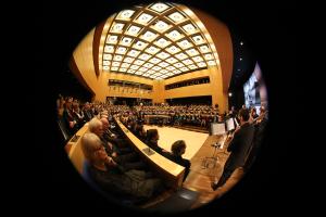 „Schönheit ist politisch", zitierte Schäuble die Literaturnobelpreisträgerin sowie Literaturpreisträgerin der Konrad-Adenauer-Stiftung, Herta Müller. Sie entdeckte die Schönheit und Vielfältigkeit der Sprache. So konnte die Wirklichkeit eine andere Farbe erleben. Sie verfälschte ihre Umwelt nicht, sondern lernte ihren Blick auf das Außergewöhnliche zu lenken, um das Gewöhnliche in Zeiten von Diktatur und Unterdrückung zu ertragen, so Schäuble.