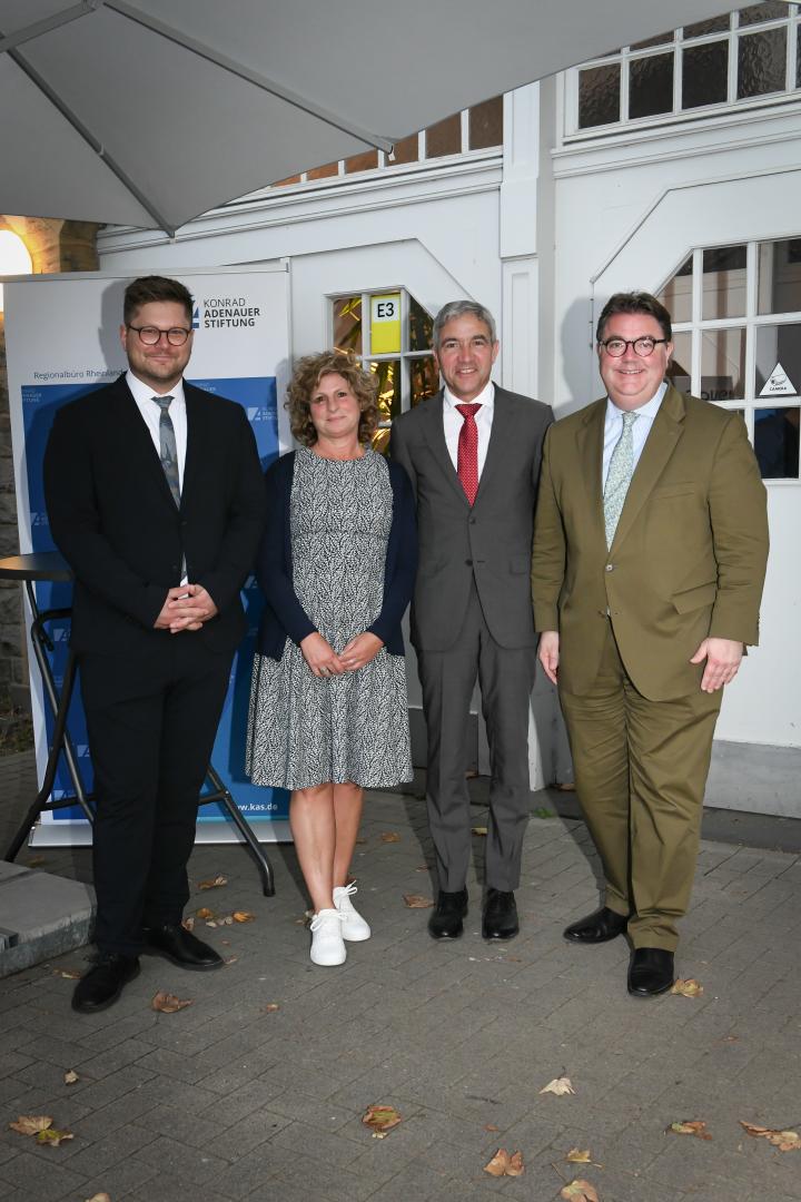 Nach der Begrüßung durch Simone Gerhards, Leiterin Regionalbüro Rheinland der Konrad-Adenauer-Stiftung, eröffnete Ansgar Heveling, MdB und Schirmherr der Reihe „Talk im Bahnhof“, den Abend. Als „einsamsten Platz in der Republik“ bezeichnete er das Pult im holzgetäfelten Gerichtssaal in Karlsruhe, wo das Bundesverfassungsgericht seinen Sitz hat. Besonders, wenn der Senat, bestehend auch acht Verfassungsrichterinnen und -richtern in roten Roben, mit seinen Fragen begänne. Allerdings sei es für jede Bürgerin und jeden Bürger möglich, diesen Platz einzunehmen und das eigene Anliegen vorzutragen.