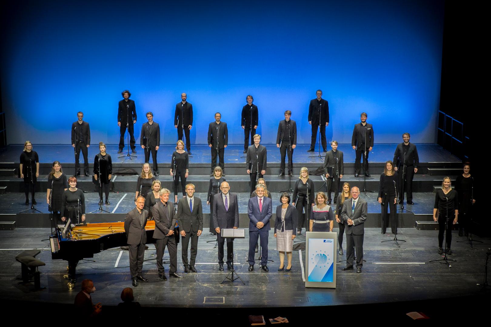 30 Jahre Deutsche Einheit, 250 Jahre Ludwig van Beethoven, diese Daten, so der Vorsitzende der Stiftung Prof. Dr. Norbert Lammert, stellen die Rahmendaten des heutigen Tags der Einheit. Sie stehen in einem tieferen Zusammenhang: Beethoven war republikanisch gesinnter, europäischer Humanist, seine „Ode an die Freude“ wurde folgerichtig Europahymne; die deutsche Einheit konnte aber nur so friedlich erlangt werden, weil die europäische Einheit, die „zweite Seite der Medaille“, den Rahmen für dieses Jahrhundertereignis abgab. „Seid umschlungen, Millionen“ – Lammert legte den Finger in die Wunde der europäischen Einigung – so enthusiastisch der Beethovensche Text ist, so wenig begeistert, so getrübt ist die Wirklichkeit der EU-Politik. „Veränderungen sind möglich!“ so Lammert, „wenn man die Hoffnung nicht aufgibt und daran arbeitet.“ Damit schlug er den Ton an, der zum Ende des Tages noch einmal in der von ihm verfassten und von Stefan Heucke vertonten „Europa-Fantasie“ anklang, die an diesem Tag in der Bonner Oper welturaufgeführt wurde.