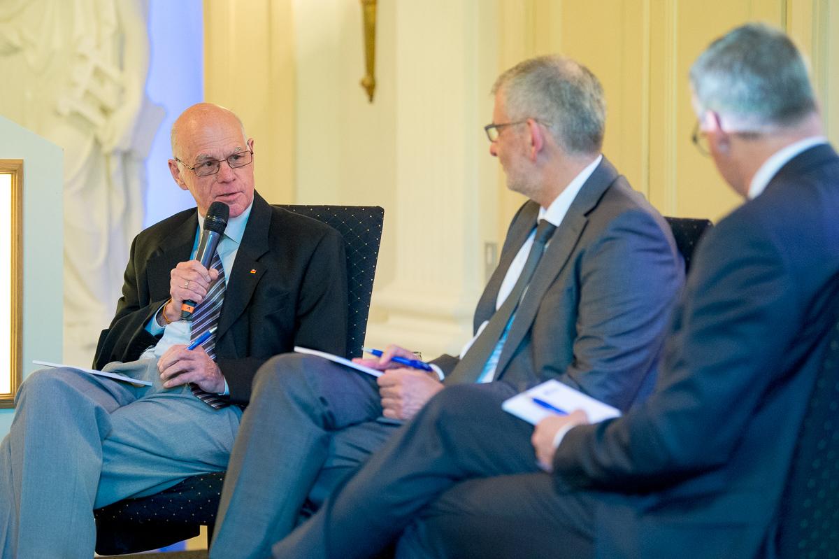 Zum Schluss wurde es dann noch spannungsreich, als es nämlich um den deutschen Föderalismus ging. Der Europarechtler von Danwitz bemängelte die Effizienz des deutschen Föderalsystems im europäischen Verbund, während Norbert Lammert besorgt auf die zunehmende Unbeliebtheit des föderalen Systems schaute. Föderalismus würde wahrscheinlich bei einer Volksabstimmung abgeschafft, was aber auch an der Neigung der Länder liege, gegen Dotationen des Bundes ihre eigenen Rechte aufzugeben.