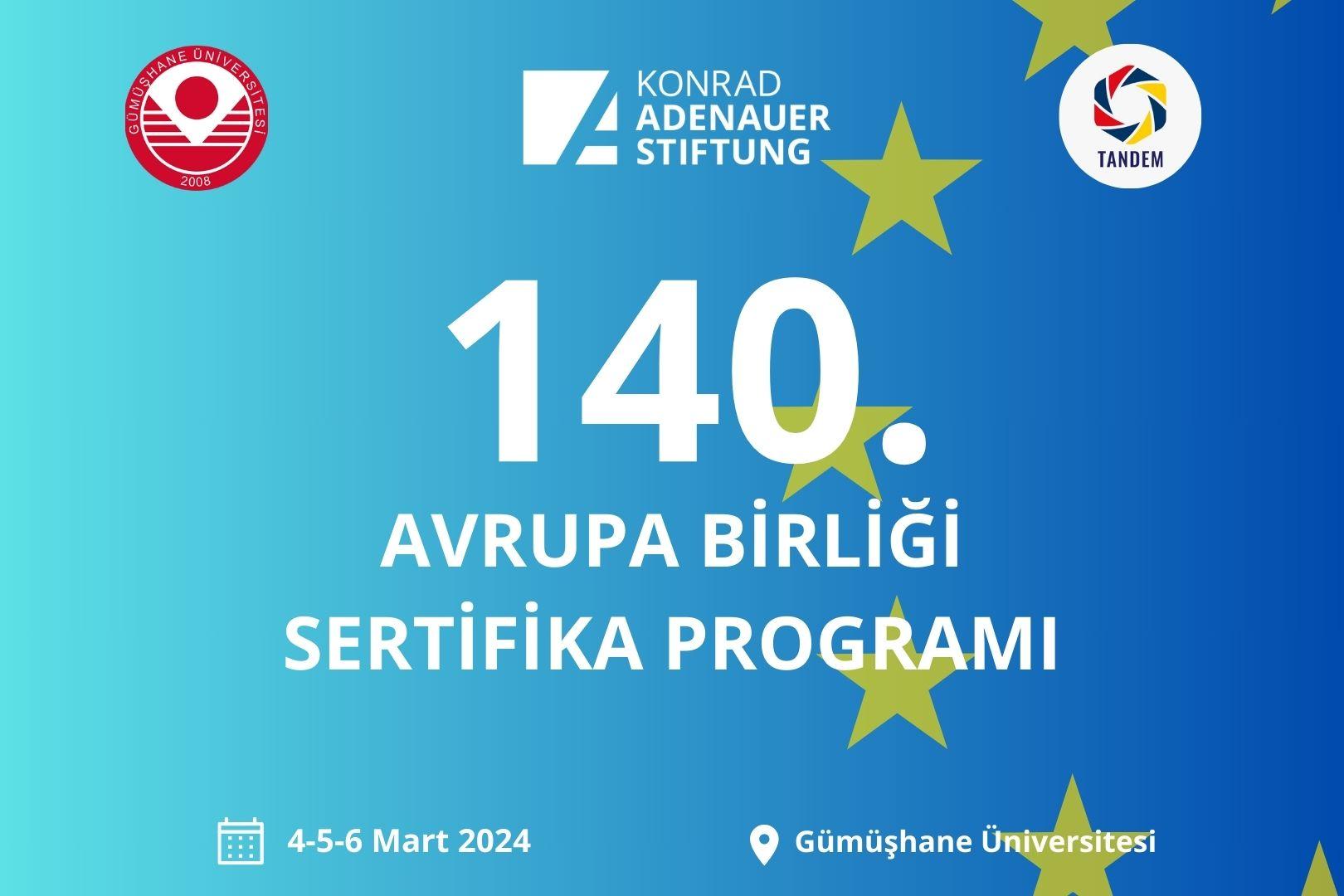 Gümüşhane Üniversitesi işbirliğiyle, AB'yi daha yakından keşfetme fırsatı sunan 140. etkinliğimizi düzenliyoruz. Programımız Türkçe olarak gerçekleştirilmekte ve Gümüşhane Üniversitesi'ndeki tüm öğrencilerin ücretsiz katılımına açıktır.
