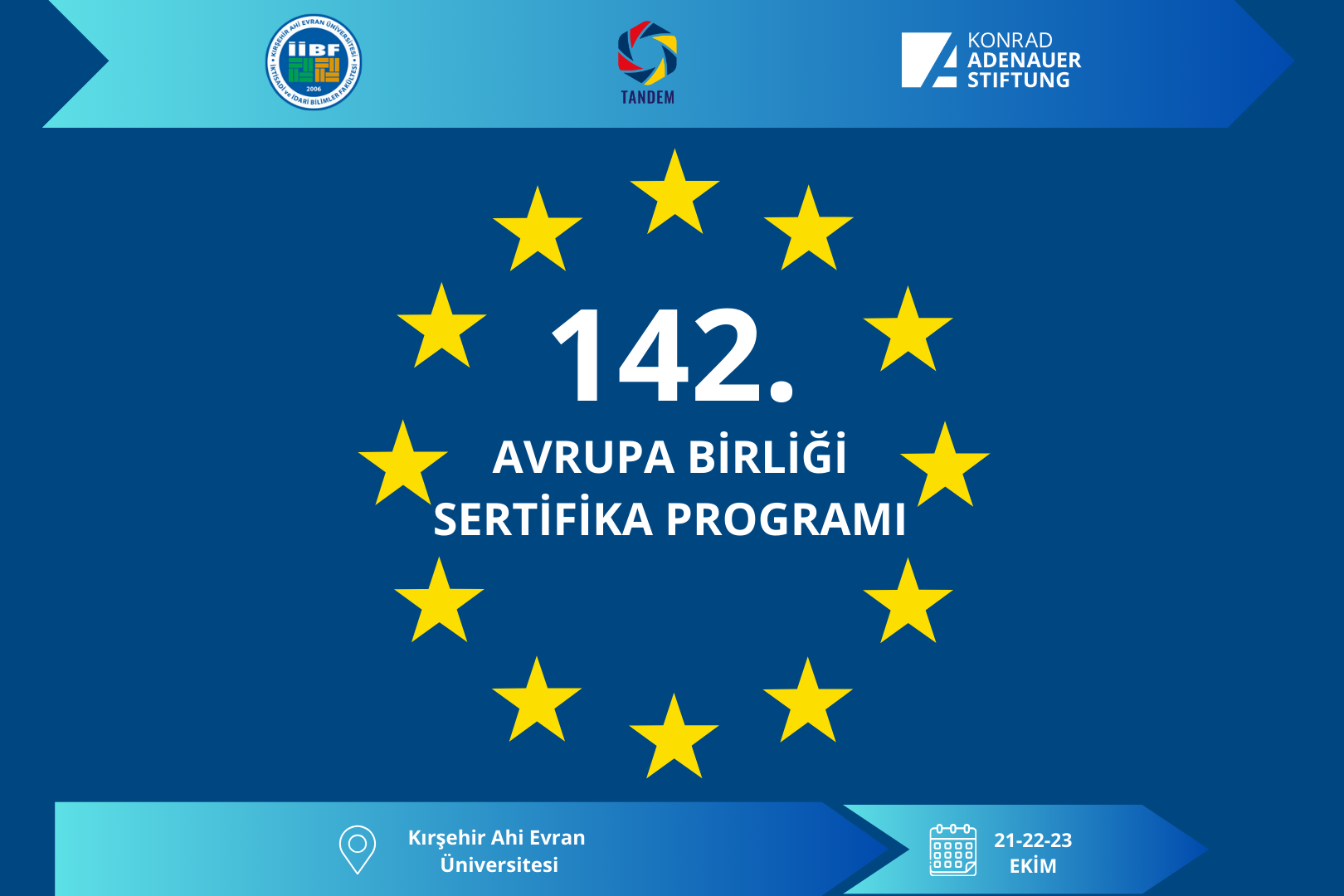 142. AB Sertifika Programı, Konrad-Adenauer-Stiftung Türkiye, TANDEM ve Kırşehir Ahi Evran Üniversitesi ortaklığında 21-22-23 Ekim 2024 tarihleri arasında gerçekleştirilecektir.