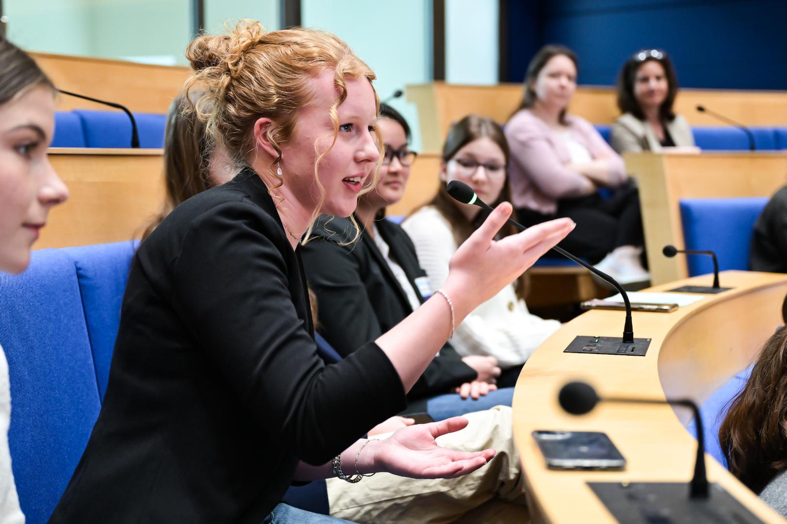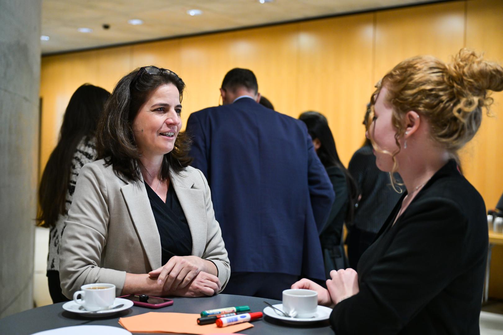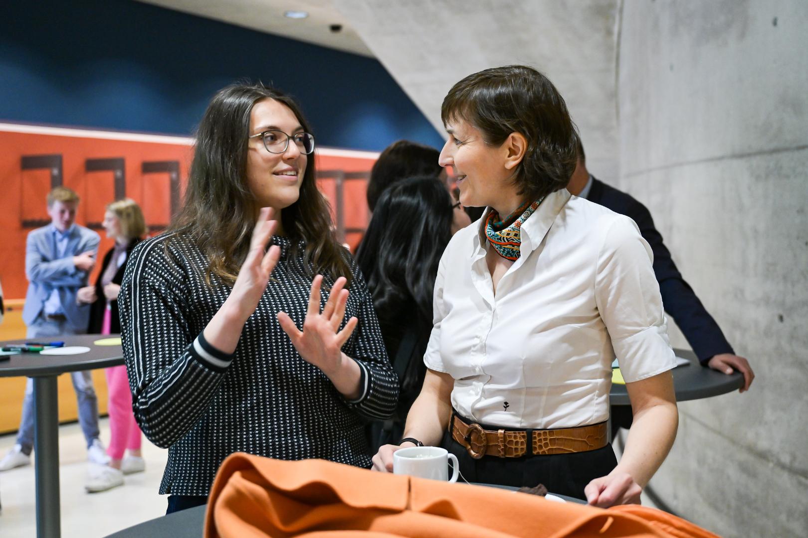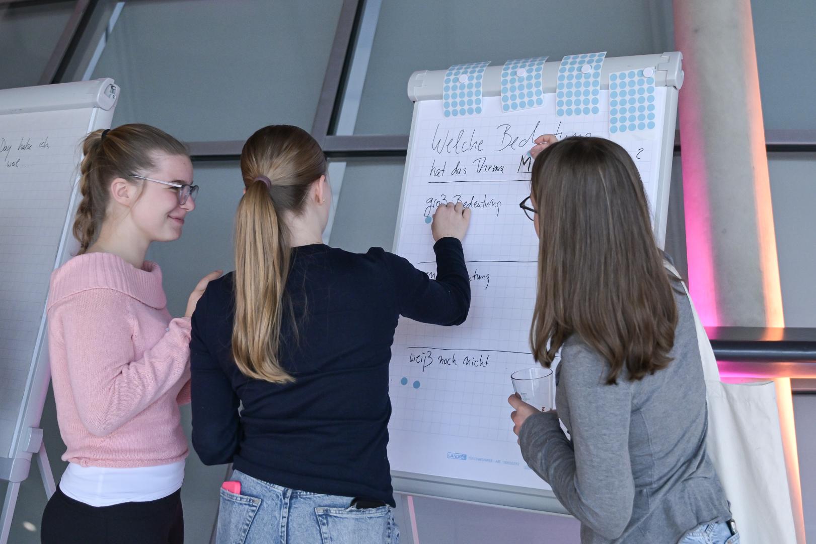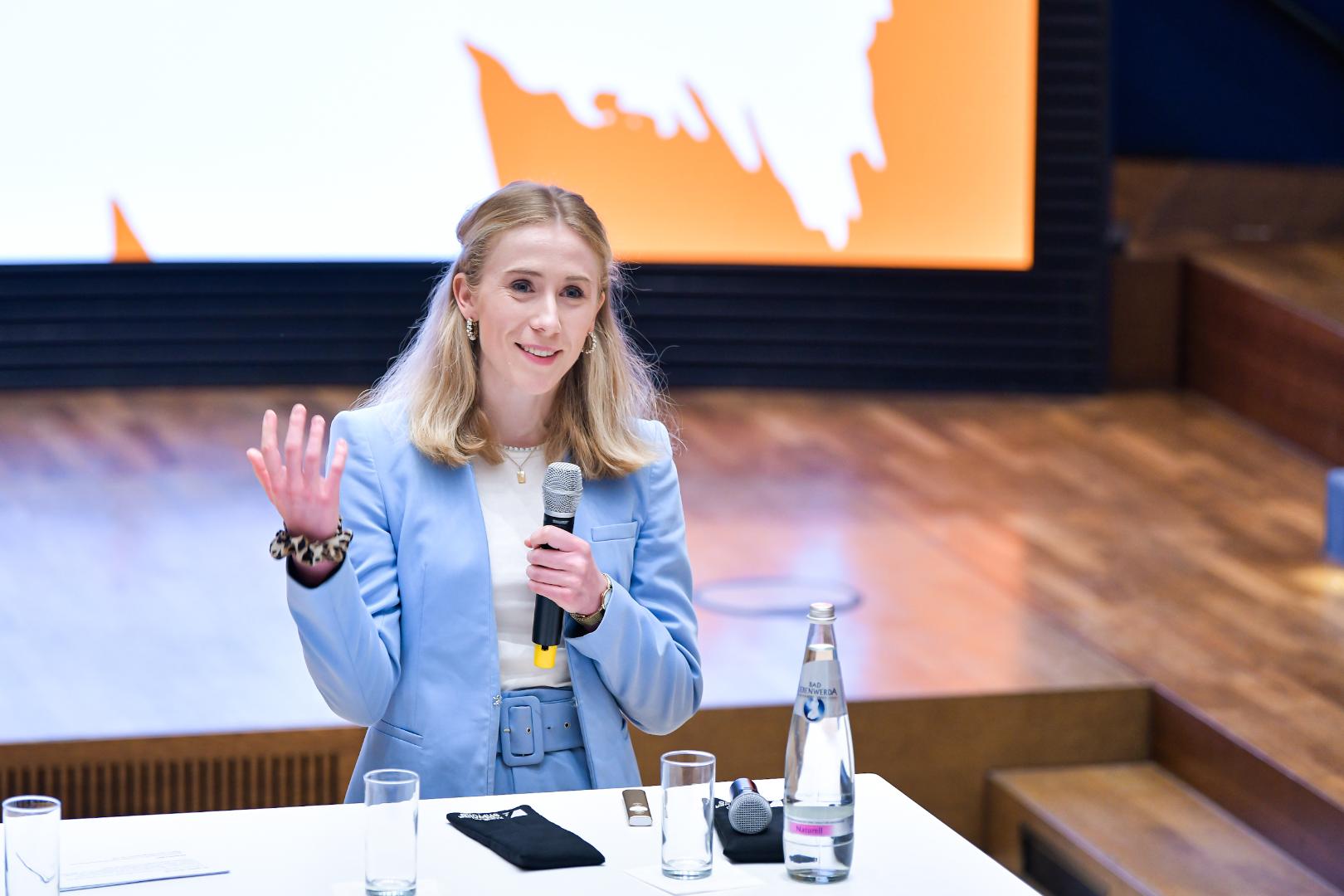 Das es auch anders geht, bewiesen im Anschluss Chemikerin Dr. Marion Hitchcock (Leiterin Forschung & Entwicklung Transformation bei der Bayer AG), KI und Robotics Forscherin Elisa Czerski (Gründerin und Geschäftsführerin von N Robotics) und Wirtschaftsinformatikerin Alexandra Zins (Direktorin Globale Geschäftsentwicklung und Regierungsangelegenheiten bei SAP), die persönliche Einblicke in ihre beruflichen Tätigkeiten und Lebenswege sowie ihre Erfolge aber auch die Herausforderungen, auf die man als Frau in von Männern dominierten Berufsfeldern trifft, im gemeinsamen Gespräch mit den Teilnehmerinnen teilten.