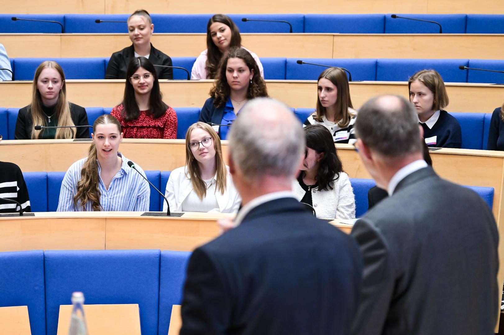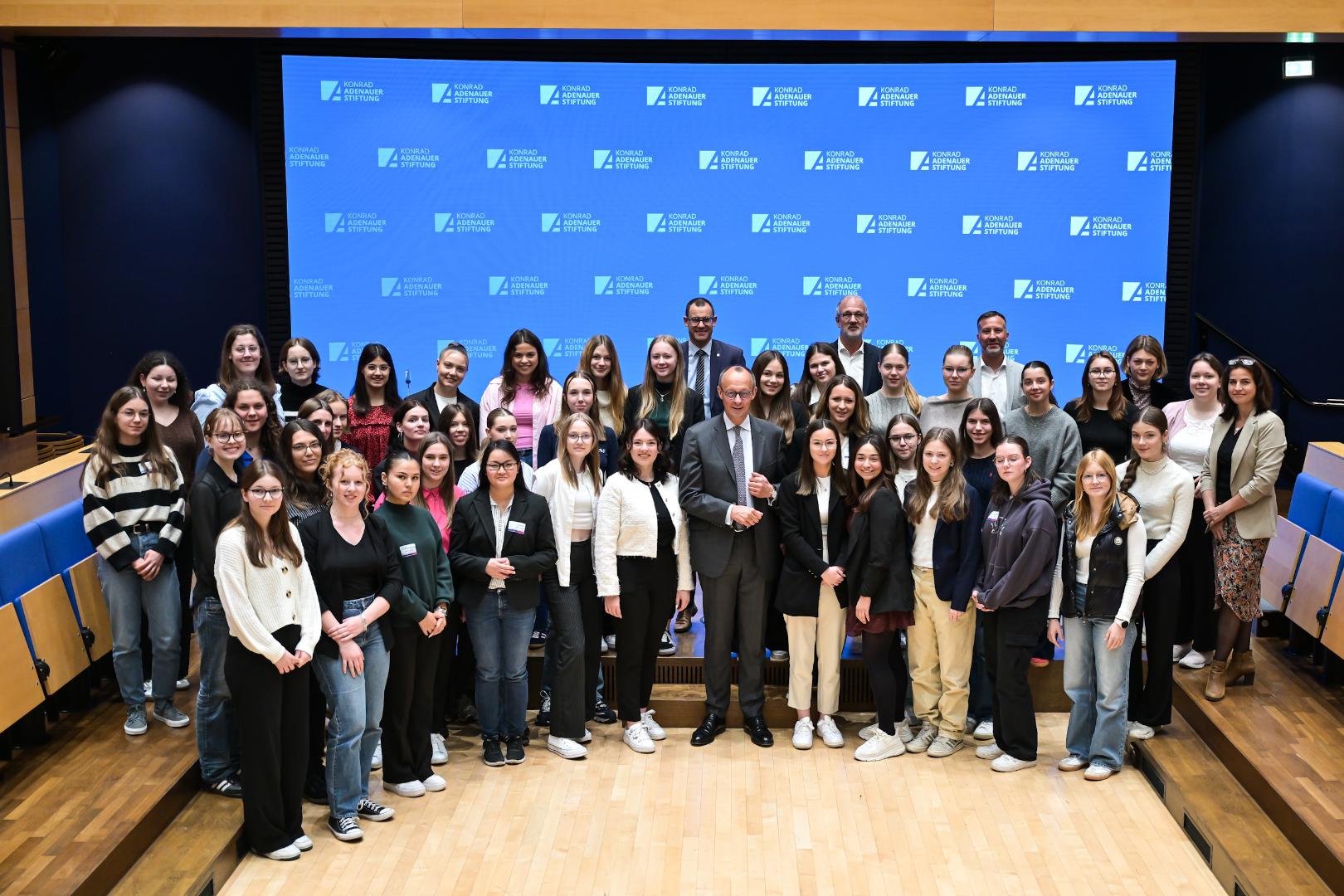 Abgeschlossen wurde das Vormittagsprogramm in der Akademie der Konrad-Adenauer-Stiftung durch den Besuch von Friedrich Merz MdB, Vorsitzender der CDU/CSU-Bundestagsfraktion und der CDU Deutschlands, der sich in einem intensiven Austausch den Fragen der jungen Frauen stellte.