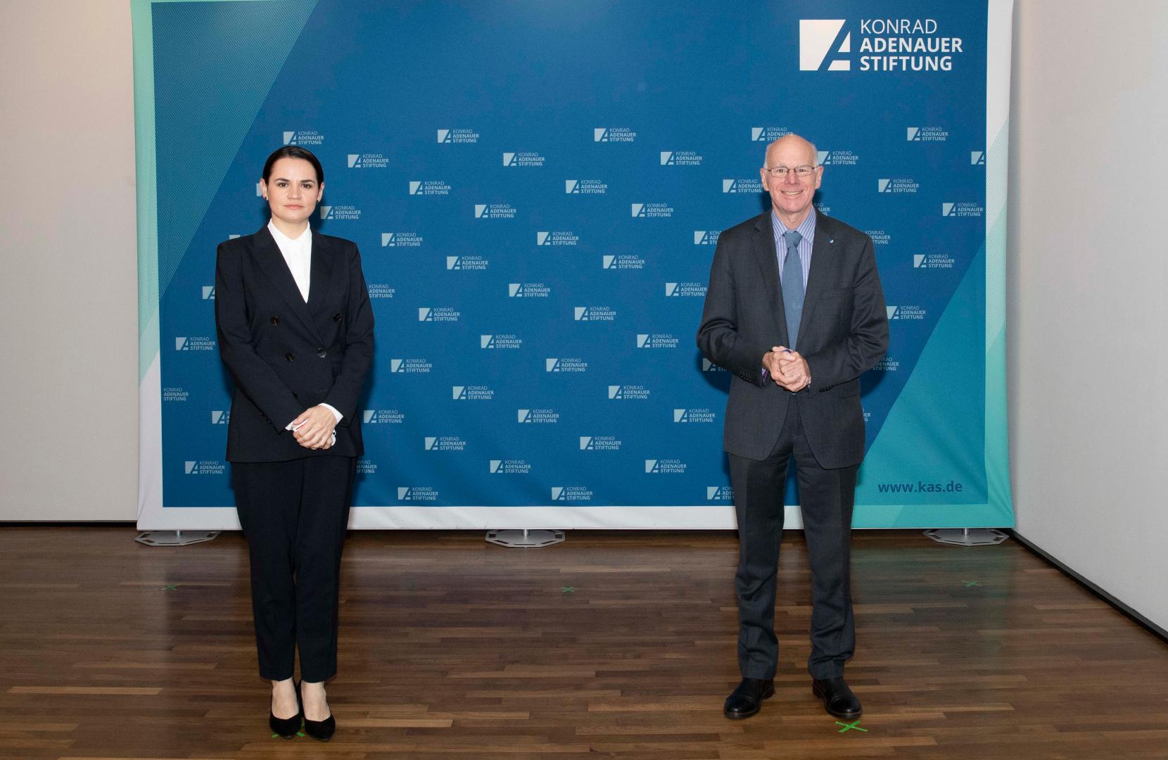 Tsikhanouskaja bat um Beistand für den Weg aus der Krisensituation. Lukaschenko habe keine Legitimität mehr und sei in den Augen der Belarusen ein „Krimineller“ geworden. Die EU und Deutschland müssten den Druck und Personensanktionen erhöhen und finanzielle Hilfen an das Regime einstellen. Tsikhanouskaja warb darum, die Freiheitsbestrebungen des Volkes weiter zu begleiten und Belarus hoch auf der politischen Agenda zu halten.