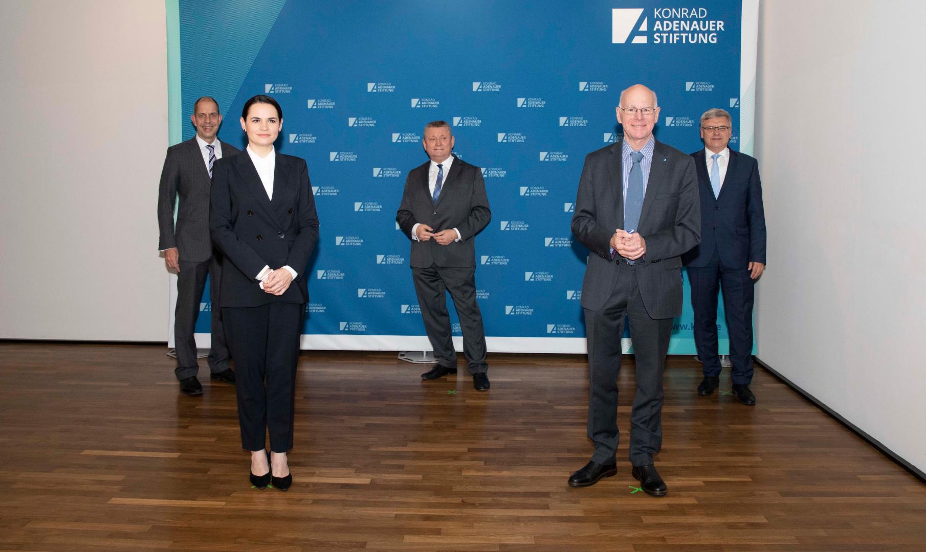 Norbert Lammert wies darauf hin, dass die KAS schon seit vielen Jahren eine Reihe von Aktivitäten und Projekten in Belarus unterstützt und unterstrich, dass das Land historisch, geografisch und kulturell in Europa verwurzelt sei. Den Besuch Sviatlana Tsikhanouskayas sehe er als "einen neuen Akzent für eine starke Beziehung", vor allem auch mit Blick auf die Stärkung der Rolle der Zivilgesellschaft im Land. Er sagte ihr und der Demokratiebewegung Unterstützung zu in ihren Forderungen nach freien Wahlen, Freilassung der politischen Gefangenen und einem sofortigen Ende der Gewalt. Auch die anwesenden Bundestagsabgeordneten zeigten sich beeindruckt von der mutigen Reaktion der belarussischen Bevölkerung.