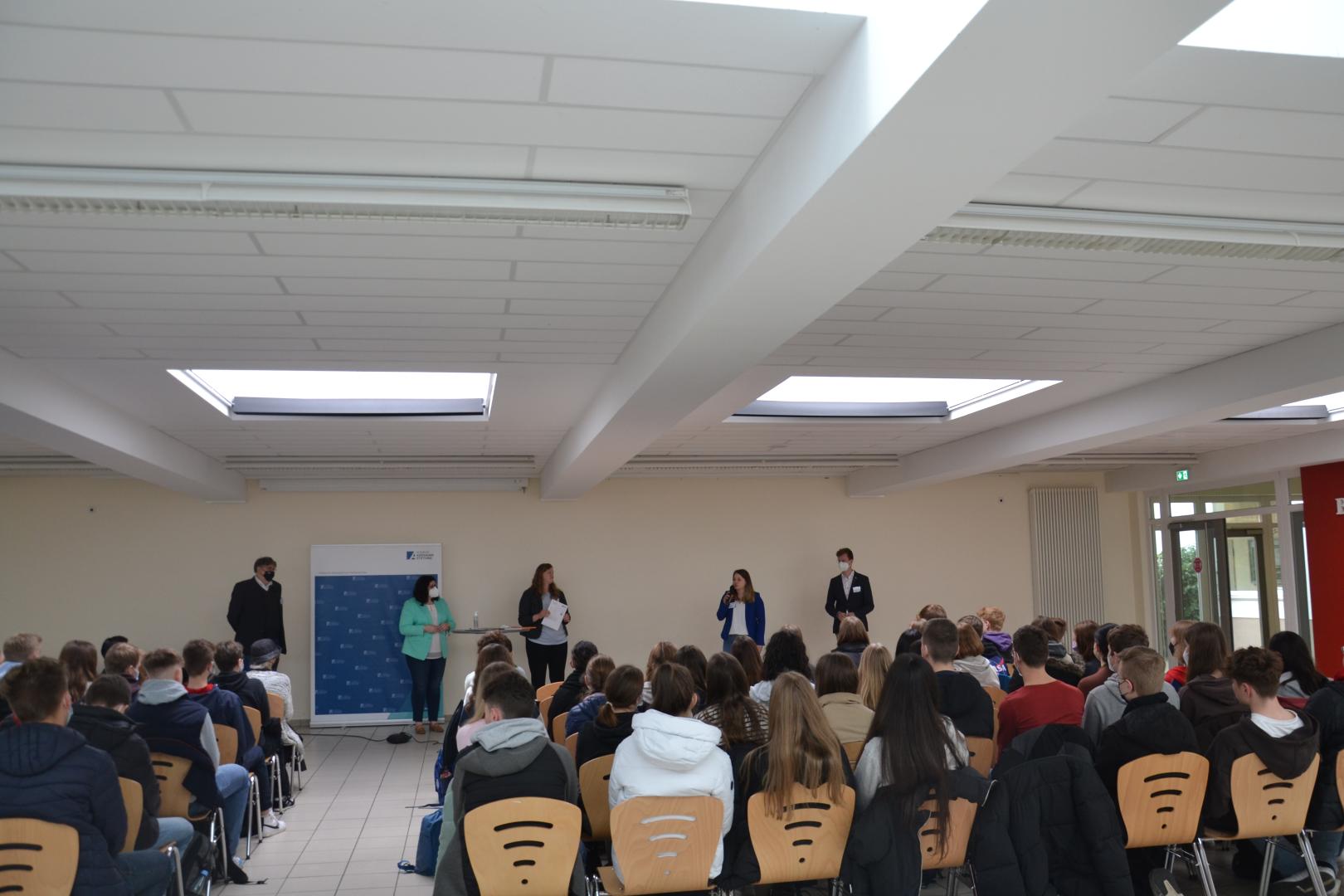 Neben dem Themenkomplex „Werte und Rechte, Rechtsstaatlichkeit und Sicherheit“ sowie dem Thema „Umwelt und Klima“, zeigten sich die Jugendlichen besonders interessiert am Themenbereich „Bildung, Jugend, Kultur und Sport“. Frau Düpont standen bei der Veranstaltung Harm Adam, Vertreter der Europa-Union Deutschlands, Konstantin Gerbrich und Pia Holstein von der Bürgerinitiative „Pulse of Europe“ zur Seite. In Kleingruppen mit je einem Referenten bekamen die Schülerinnen und Schüler die Gelegenheit, Fragen zum Thema Europäische Union zu stellen und mit den Referenten zu diskutieren. Besonders wichtig ist den Jugendlichen das Thema Erasmus+. Aber auch über Rechtsstaatlichkeit und Sicherheit wurde, nicht zuletzt aufgrund der Aktualität des Themas, viel diskutiert.