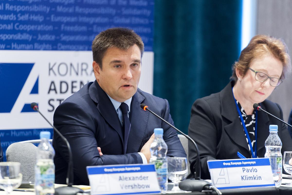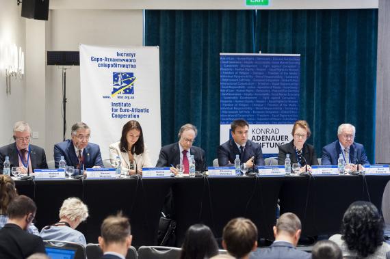 На першій панелі Міністр закордонних справ України Павло Клімкін наголосив, що стабільність України є важливою не лише для безпеки східноєвропейського регіону, а і для всієї Європи та США, тому політики та ключові міжнародні організації мають більш серйозно ставитися до цієї проблематики. Також очільник зовнішньополітичного відомства заявив про необхідність перегляду всіх угод, укладених між Україною та Росією. Депутат Європейського парламенту, член Європейської Народної Партії Міхаель Галер заявив, що Україна, як і раніше, посідає важливе місце в європейському дискурсі. ЄС як найбільший донор України виконує свої обіцянки, але водночас очікує, що Україна проводитиме реформи і розвиватиметься в належному напрямку, підкреслив політик. При цьому Євросоюз надає підтримку всім партіям України, що хочуть перетворити її на «нормальну та нудну демократію». Посол Канади в Україні Роман Ващук запевнив присутніх у сталій підтримці України з боку країни кленового листа та заявив про готовність своєї держави долучитися до можливої миротворчої місії ООН на Донбасі. Почесний експерт Центру стратегії та безпеки імені Скоукрофта (Атлантична рада) Александер Вершбоу заявив, що прогнозованість адміністрації США та її позиції щодо України значно погіршилися. Про це свідчать два контроверсійні сигнали: з одного боку зросла воєнна підтримка України, зокрема завдяки зняттю ембарго на постачання зброї адміністрацією Трампа, з іншого – різноманітні дії та висловлювання Президента США свідчать про зближення з Росією. Голова Комітету ВР України в закордонних справах Ганна Гопко наголосила на важливості демонстрації Україною свого прагнення до здійснення реформ. Для цього уряд і парламент мають діяти більш послідовно, узгоджено й відповідально, аби давати західноєвропейським партнерам правильні сигнали, підкреслила народний депутат.