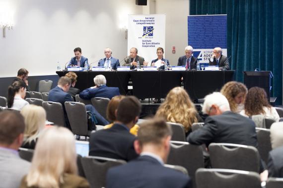 На третій панелі було обговорено виклики, пов’язані з інтеграцією України до НАТО, а також російську стратегію гібридної війни. Тиск із боку Росії має не лише воєнну, а і економічну та інформаційну складові, вважають Директор Ініціативи з контролю за озброєнням Інституту Брукінгса, Посол США в Україні (1997-2000 рр.) Стівен Пайфер та Директор Центру інформації та документації НАТО в Україні Барбора Маронкова. Тому важливо й надалі розбудовувати та зміцнювати співпрацю між Україною та НАТО. Генерал-лейтенант Бундесверу у відставці Фолькер Гальбауер зупинився на воєнному аспекті, наголосивши, що роззброєння, яке тривало з 1990 до 2014 рр., поставило НАТО перед проблемою, що може бути розв’язана лише в рамках співпраці всіх членів НАТО між собою, а також із Україною. Співробітництво між Україною та НАТО необхідно розбудовувати, зокрема, з метою протидії гібридним методам ведення війни, підкреслила Б. Маронкова. У зв’язку зі скорим проведенням президентських виборів в Україні Посол Стівен Пайфер нагадав також про загрозу кібератак із боку Росії. Всі учасники панелі погодилися, що Росія являє собою для України не лише воєнну, а дуже багатопланову загрозу з наслідками для всієї Європи, Північної Америки та трансатлантичного альянсу.