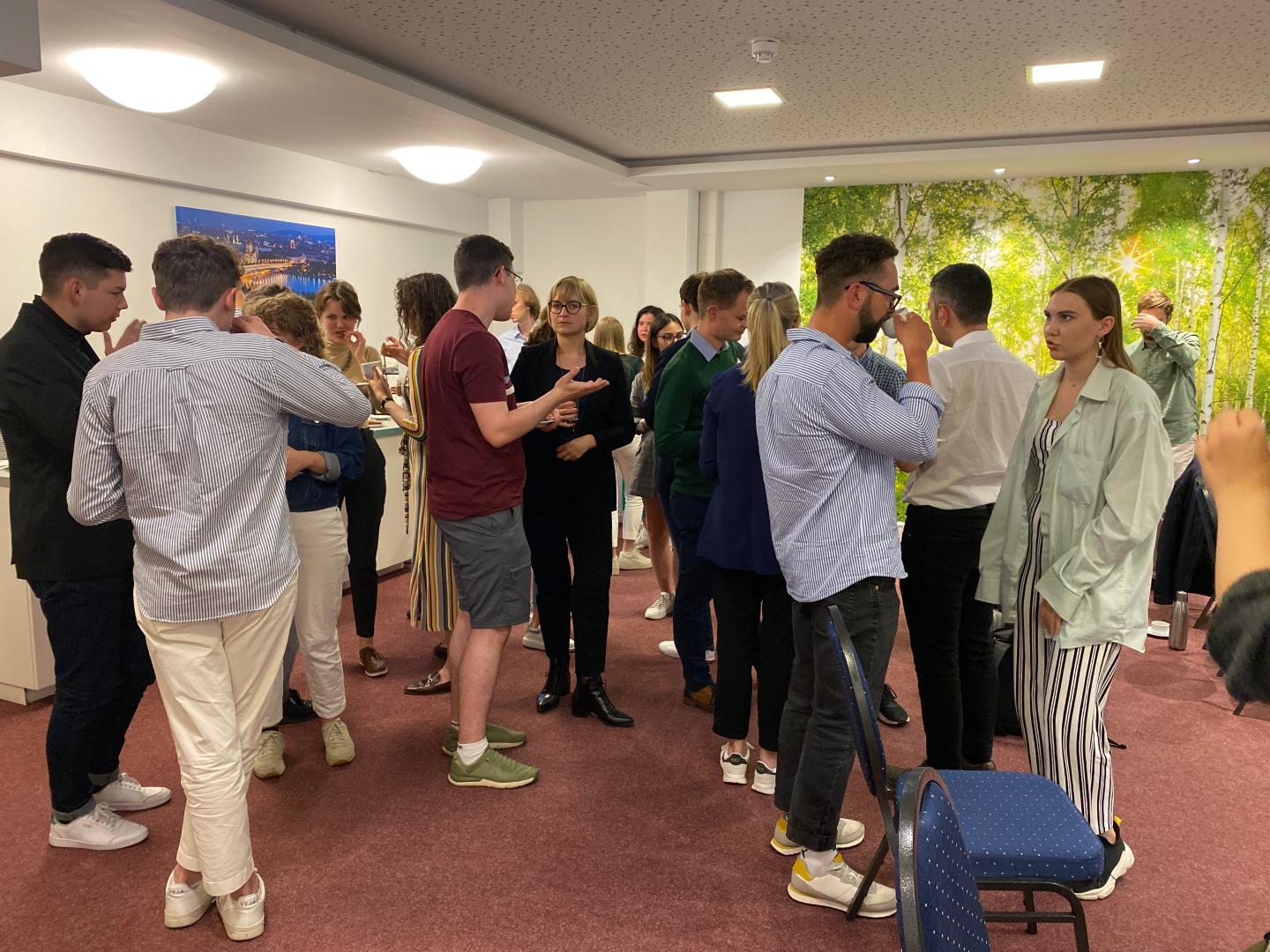 У перший день обміну стипендіати зі Сходу України зустрілися з очільницею Харківського офісу доктором Брігіттою Трібель. Під час вітальної зустрічі стипендіати змогли більше довідатися один про одного, адже всі учасники представляли різні роки набору до стипендіальної програми. Після знайомства студенти мали змогу поспілкуватися із співзасновниками українського об’єднання «Vitsche», яке в Берліні організовує акції протесту, культурно-освітні заходи, допомагає біженцям та збирає гуманітарну допомогу для України. Антон Дорох, Катерина Тарабукіна та Єва Якубовська розказали про свою діяльність та ті виклики, з якими вони стикаються під час своєї роботи. Зустріч відбулася в польському Інституті Пілецького, який надав тимчасово приміщення для організації «Vitsche».