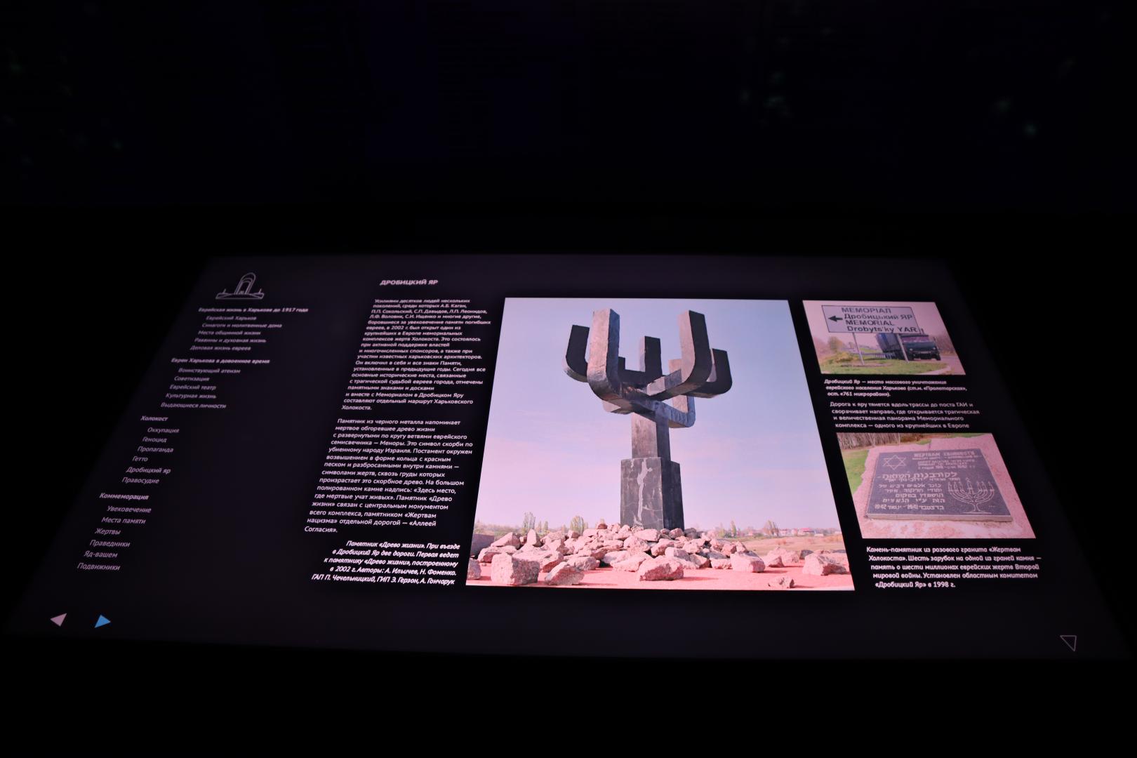 З 2002 року меморіал «Дробицький Яр» нагадує про злочин монументом, встановленим на краю ущелини. На Сході України це одне з небагатьох історичних місць пам’яті про «Голокост від куль». Своєю освітньою пропозицією для молодіжних та дорослих груп меморіал робить важливий внесок у подолання наслідків нацистських звірств та проведення пам’ятної роботи в Харківській області.