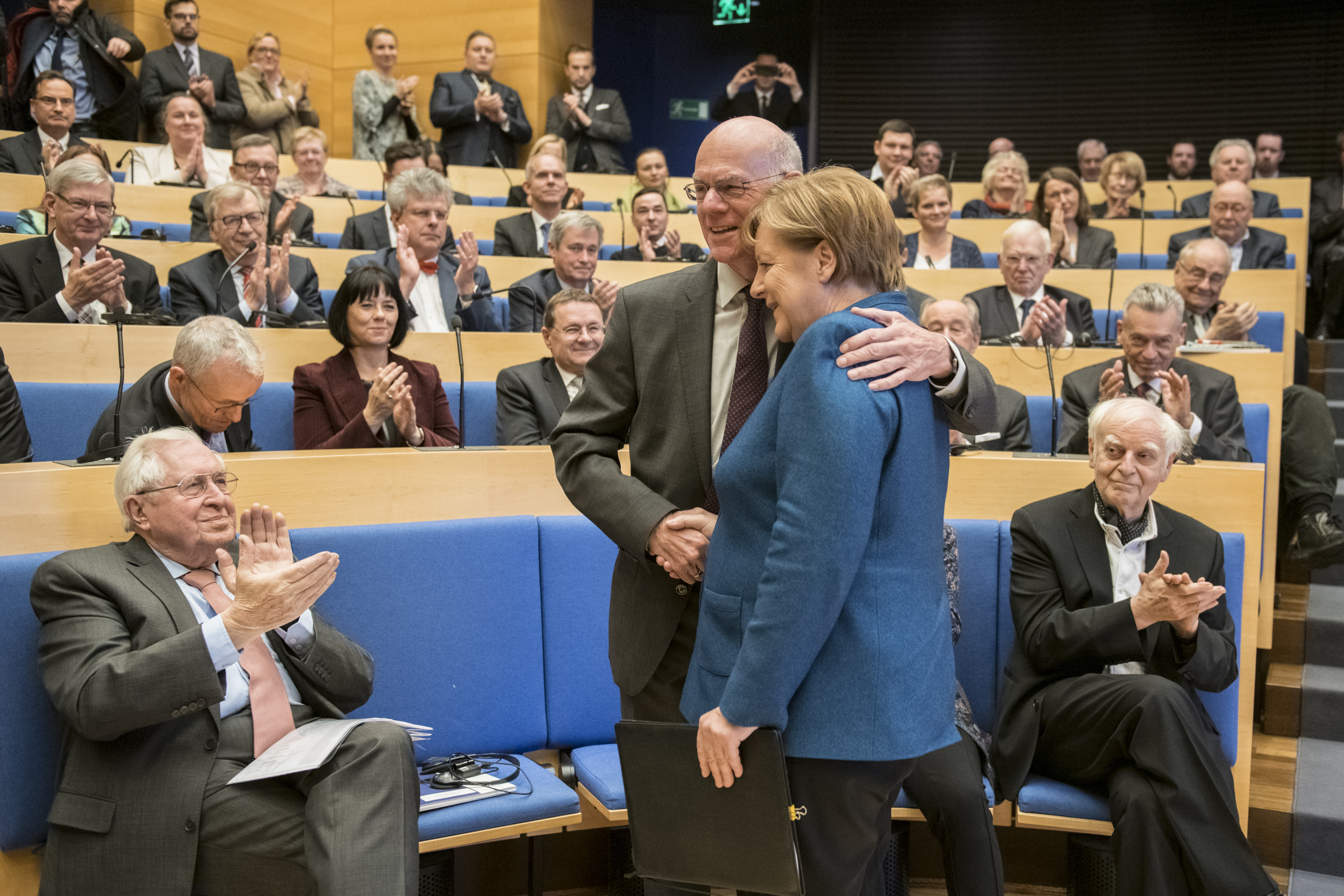 Merkel erläuterte, dass Deutschland einen Teil seiner Souveränitätsrechte an die Europäische Union abgegeben habe. „Aber die Staaten sind die Herren der Verträge“. Dazu bedürfe es immer den Rückhalt und die Entscheidung des nationalen Parlamentes. Das Herz der Demokratie sei das Parlament, sagte Merkel und bezog sich damit auf ein früheres Zitat von Prof. Dr. Norbert Lammert.