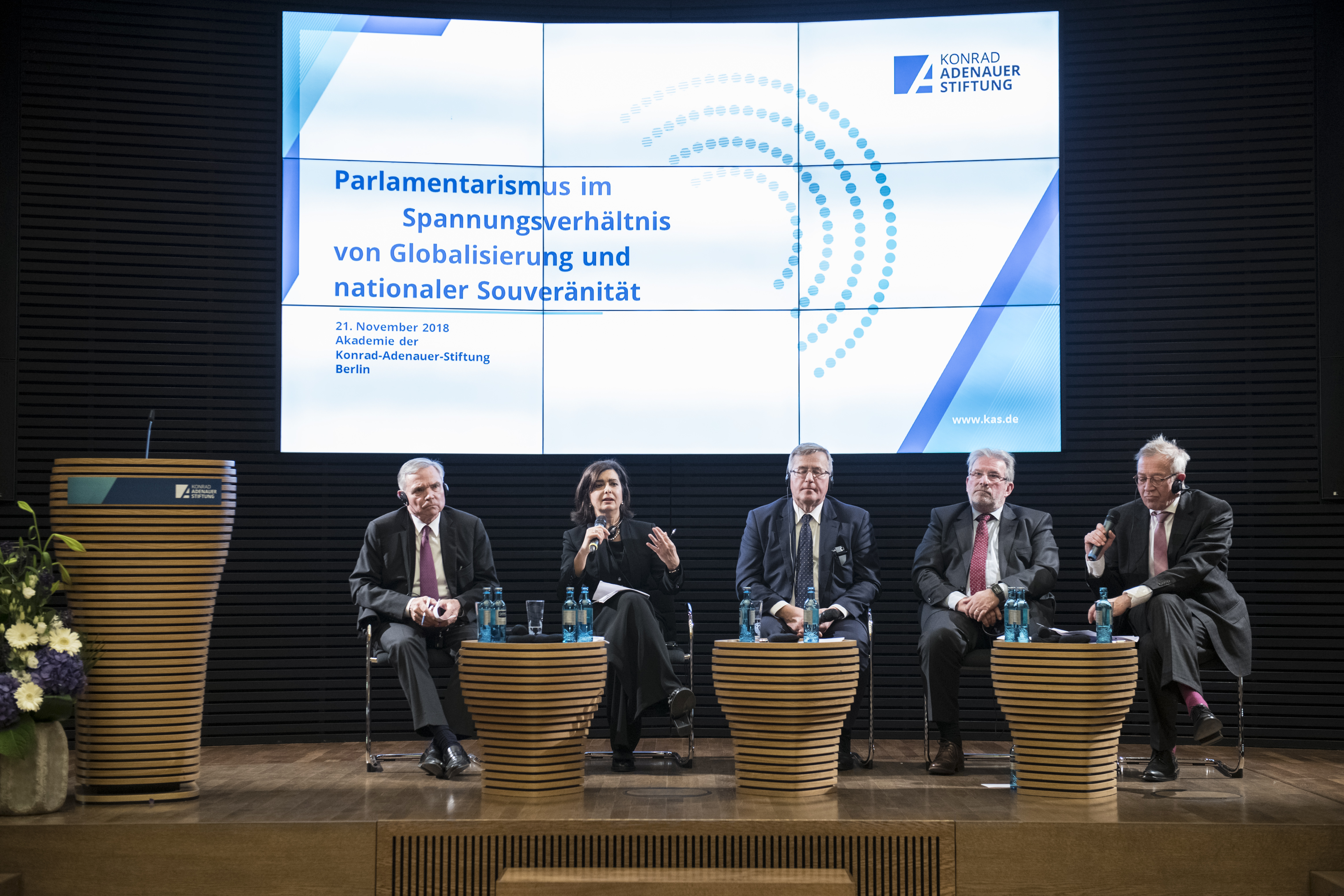 Bei der Veranstaltung „Parlamentarismus im Spannungsverhältnis von Globalisierung und nationaler Souveränität“ diskutierten internationale Parlamentspräsidenten über Lösungsansätze gegen Populismus und über die Europawahl 2019.