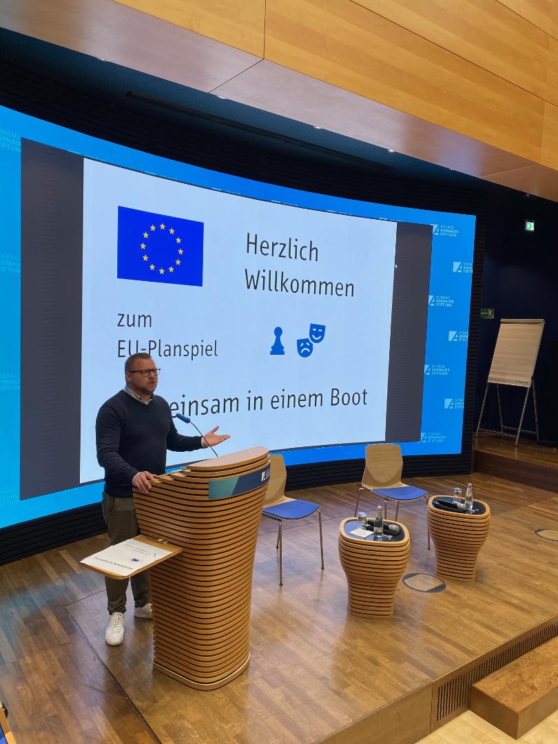 Die Enttäuschung über das Scheitern des Entwurfs war den Schülerinnen und Schülern in der anschließenden Pressekonferenz, in der ihre Lehrkräfte die Rolle von Journalisten einnahmen, anzusehen. Trotzdem war die Resonanz sehr positiv und die Begeisterung über das sehr authentische Planspiel groß. Während der inhaltlich niveauvollen Debatte zeigten sich die Schülerinnen und Schüler als leidenschaftliche Europäer. Ihnen liegt wie der Konrad-Adenauer-Stiftung eine starke und handlungsfähige EU am Herzen.Chủ đề