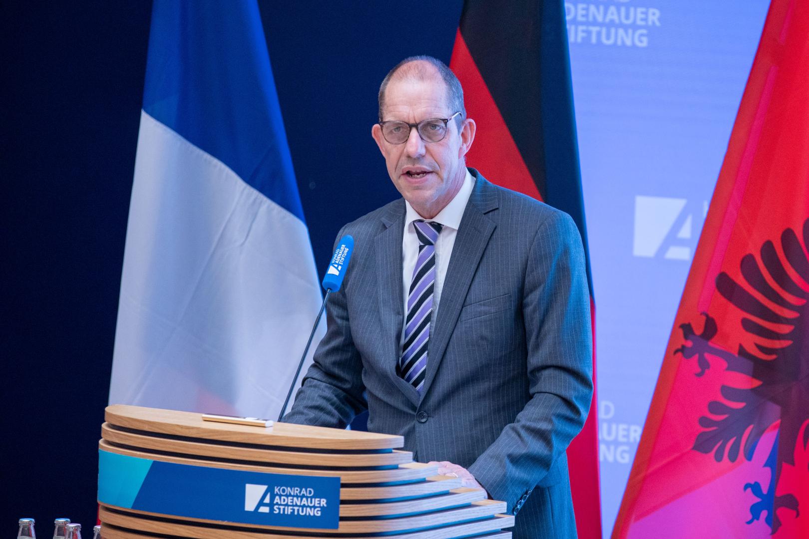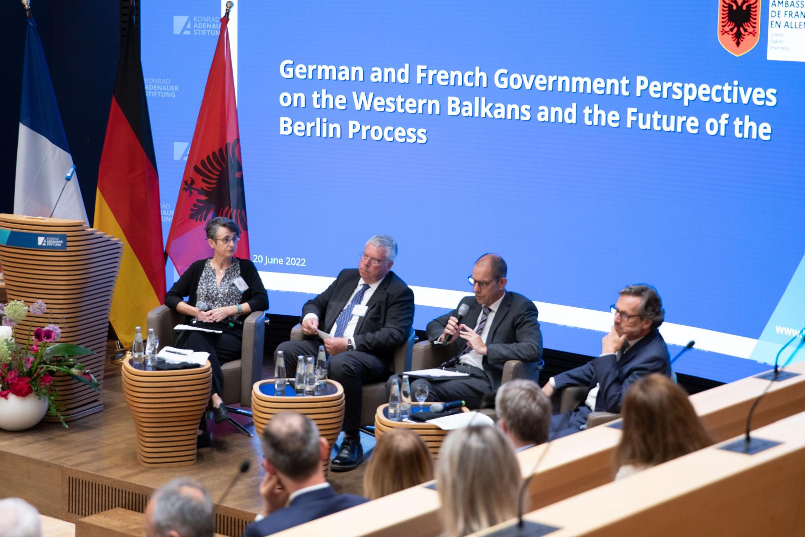Die hochrangig besetzte Veranstaltung stand dabei unter dem Eindruck der weitreichenden Auswirkungen des Krieges in der Ukraine auf die Perspektiven des Westbalkans. Neben Vertretern zahlreicher in Berlin ansässiger Botschaften nahmen unter anderem auch Abgeordnete der CDU/CSU-Bundestagsfraktion und Vertreter deutscher Bundesministerien an der Diskussionsveranstaltung teil. Ko-Schirmherren waren in diesem Jahr der Botschafter Albaniens und die Botschafterin Frankreichs.