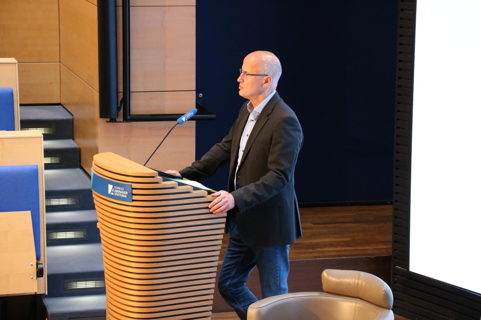 Der Jugendpolitiktag wurde zunächst von Seiten der Konrad-Adenauer-Stiftung durch Christian Schleicher eröffnet, anschließend gab der Slam-Poet Bas Böttcher mit seinem Poetry Slam einen kreativen Einstieg in das komplexe Thema.