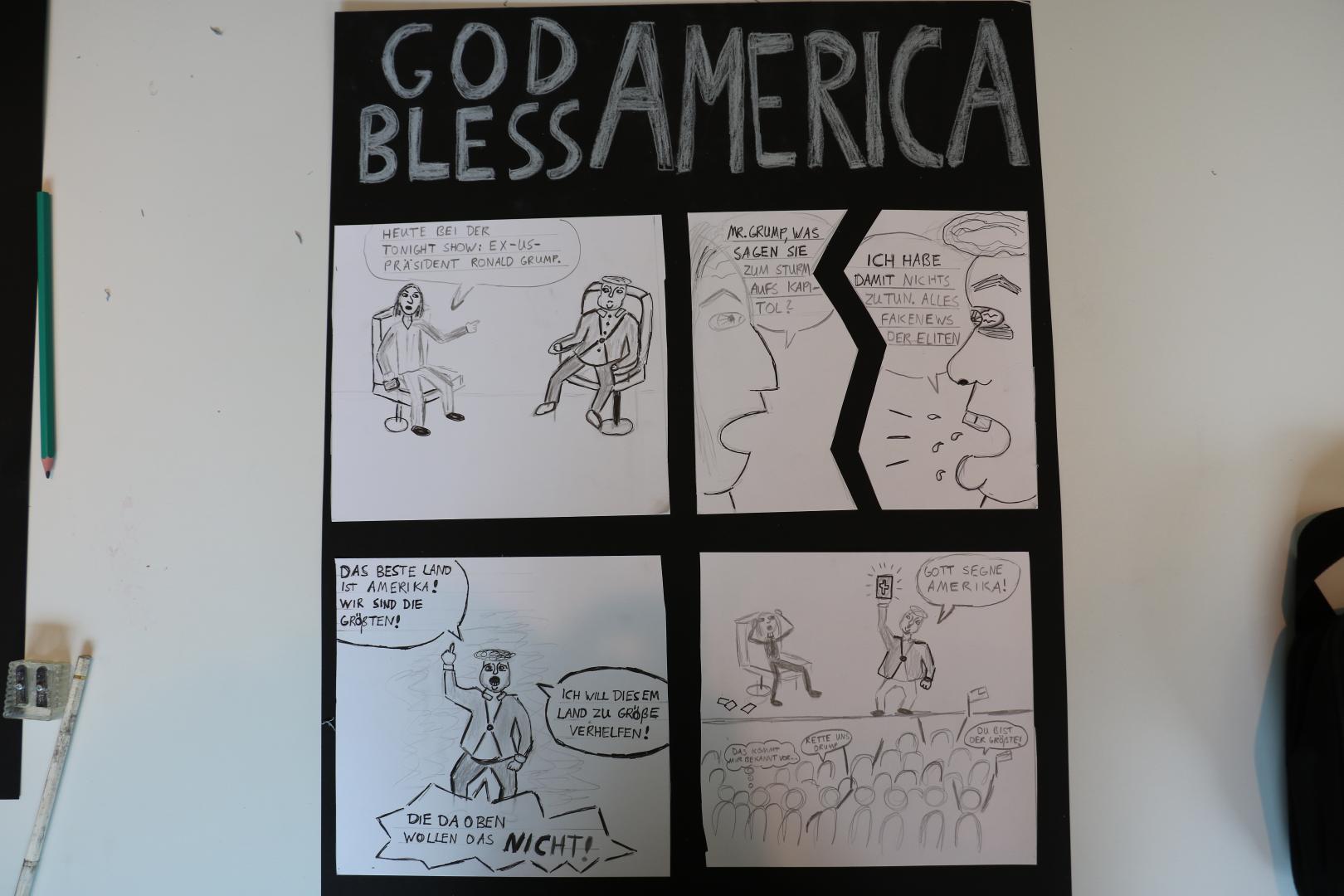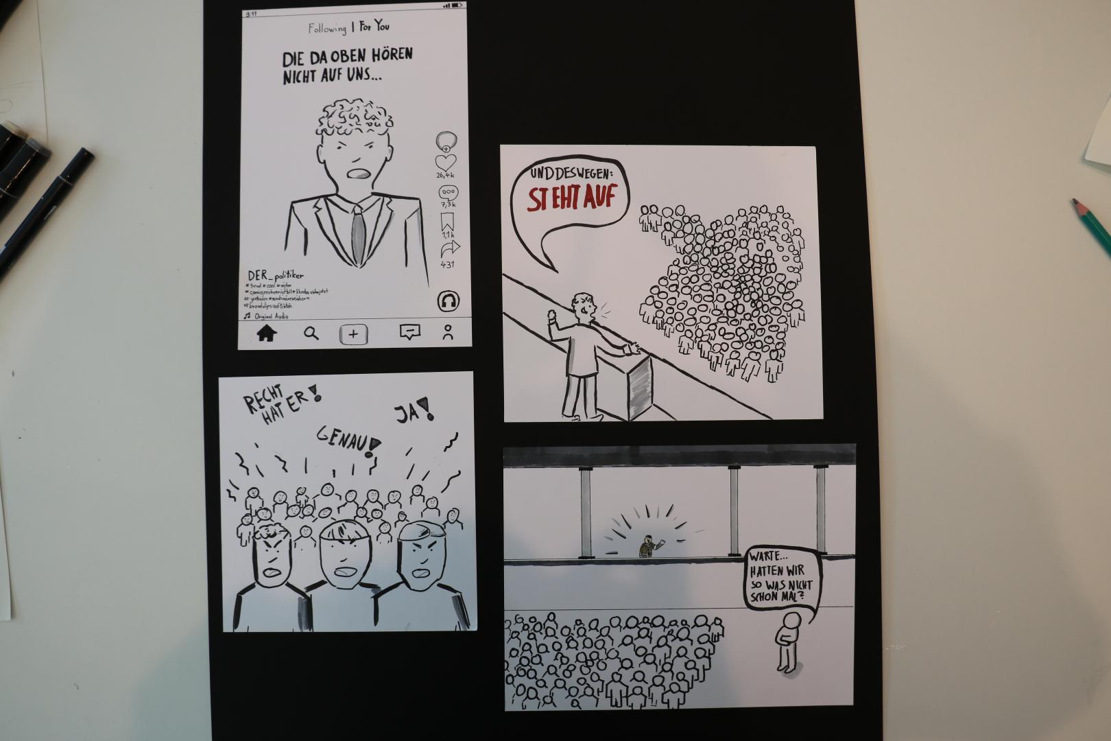Am 4. und 5. Juli tauchten die Schülerinnen und Schüler des Canisius-Kollegs, des Gymnasiums Steglitz, des Johann-Gottfried-Herder Gymnasiums und des Werner-von-Siemens-Gymnasiums in einen der sieben angebotenen Workshops ein: Film, Graffiti, Comic, Poetry-Slam, Schreibwerkstatt, Theater oder das Argumentationstraining „Klare Kante! – Demokratie demokratisch verteidigen“. Ziel war es, die Gefahren und Funktionsweisen des Populismus zu verstehen und sich inhaltlich und künstlerisch damit auseinanderzusetzen.