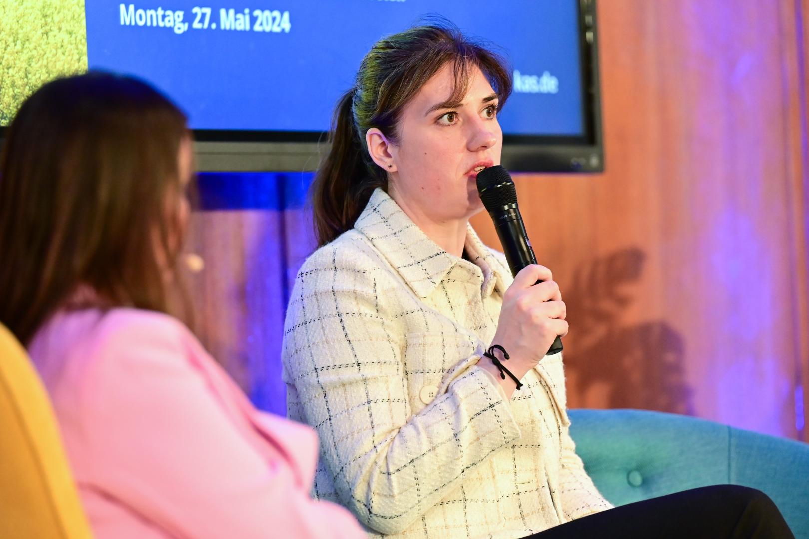 Mit Souveränität führte Moderatorin Cosima Gill von Hermann Gröhes Impulsvortrag zum anschließenden Referenten, dem Senior Fellow bei der Münchener Sicherheitskonferenz, Nico Lange. Dieser stand dem Publikum zunächst mit einem Vortrag und anschließend in einem moderierten Gespräch zur Verfügung.