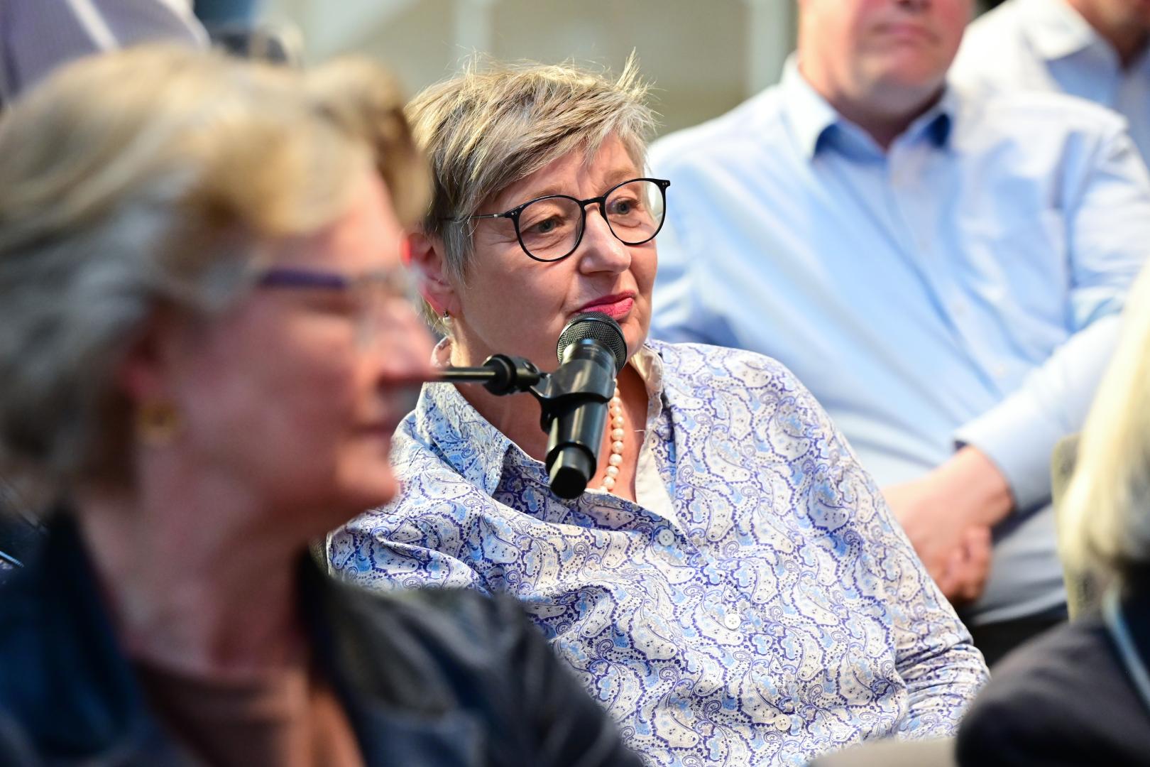 Simone Gerhards, Leiterin des Regionalbüros Rheinland, eröffnete das Grevenbroicher Schlossgespräch und begrüßte das Publikum. Im Fokus des Abends stand die Frage, wie Europa nach Ausbruch des russischen Angriffskriegs Frieden schaffen kann. In ihrer einführenden Rede unterstrich sie den Diskurs zwischen den europäischen Ländern, aber auch innerhalb Deutschlands, wie und mit welchen Mitteln der Ukraine jetzt geholfen werden müsse, und betonte, dass der Druck auf Europa so groß wie nie sei. Simone Gerhards hob hervor: "Unsere Sicherheitsinteressen werden nicht nur durch den Angriffskrieg auf die Ukraine, sondern auch weltweit von Ländern wie Russland, China und dem Iran herausgefordert."