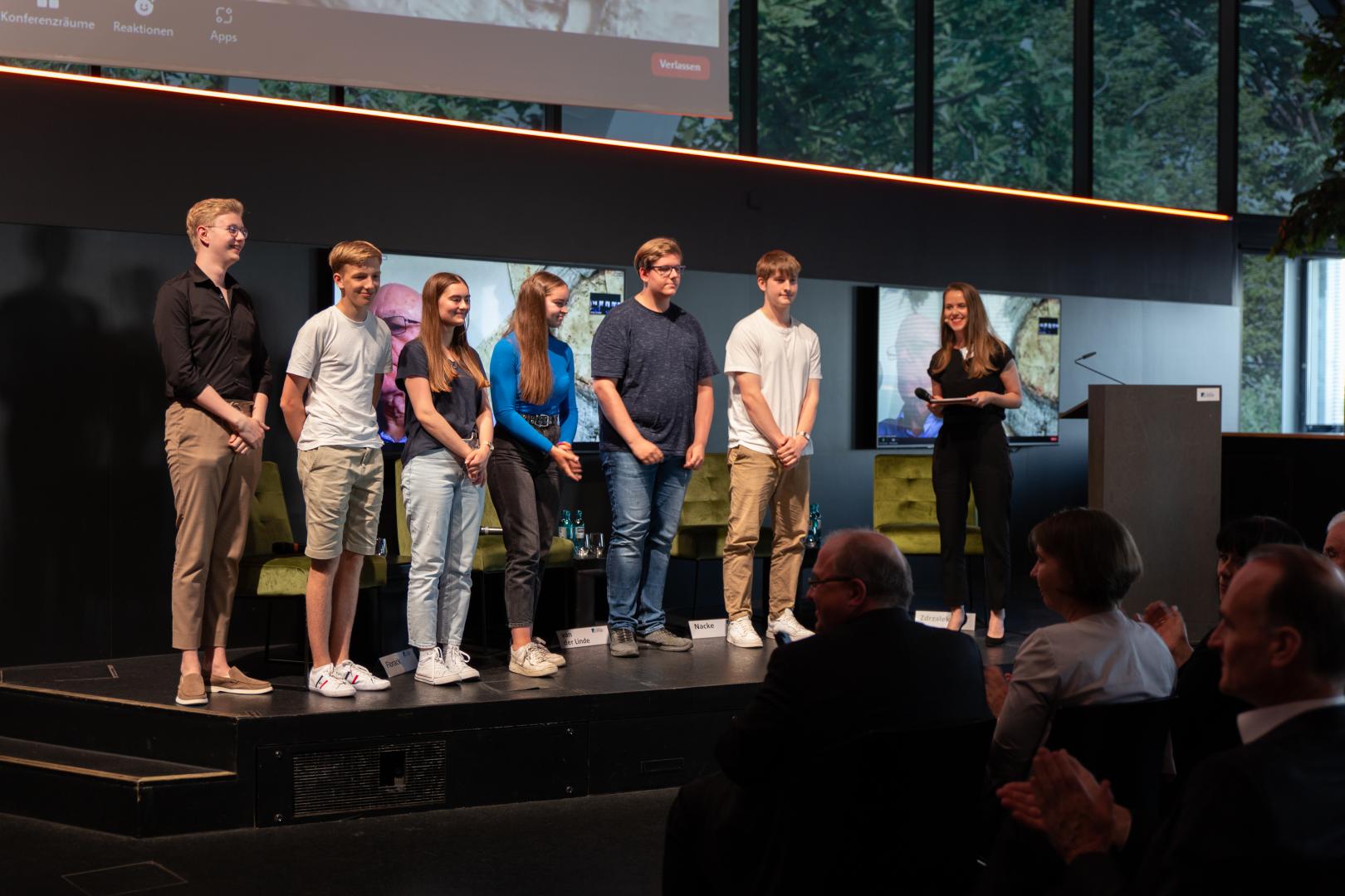 Im Anschluss betraten Schülerinnen und Schüler des Besselgymnasiums Minden die Bühne, um über ihre Erfahrungen eines Workshops der Konrad-Adenauer-Stiftung zu berichten. Bei dem sogenannten Adenauer-Lab hatten sie gemeinsam mit Referentin Dr. Julia Reuschenbach die Grundlagen der föderalen Organisation erarbeitet und erkannt, wie wichtig das persönliche Engagement in einer Demokratie ist. Die jungen Erwachsenen waren der Meinung, dass man die Demokratie wieder näher zu den Bürgerinnen und Bürgern bringen muss, um auch Personengruppen anzusprechen, die sich nicht für die Politik interessieren. Zuletzt äußerten die Schüler/innen noch den Wunsch, dass die politische Stimme der Jugend mehr Beachtung von der Politik erfährt.