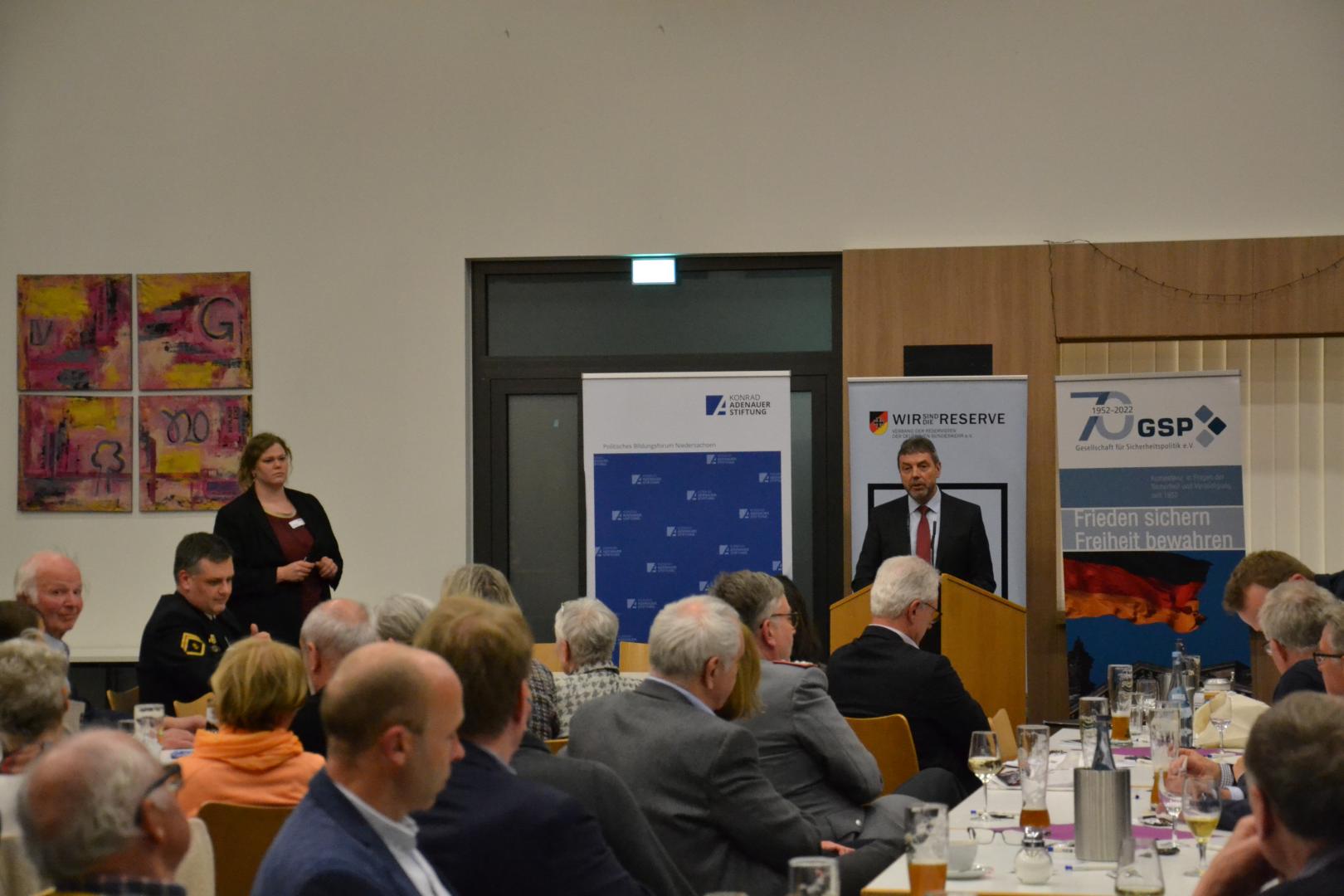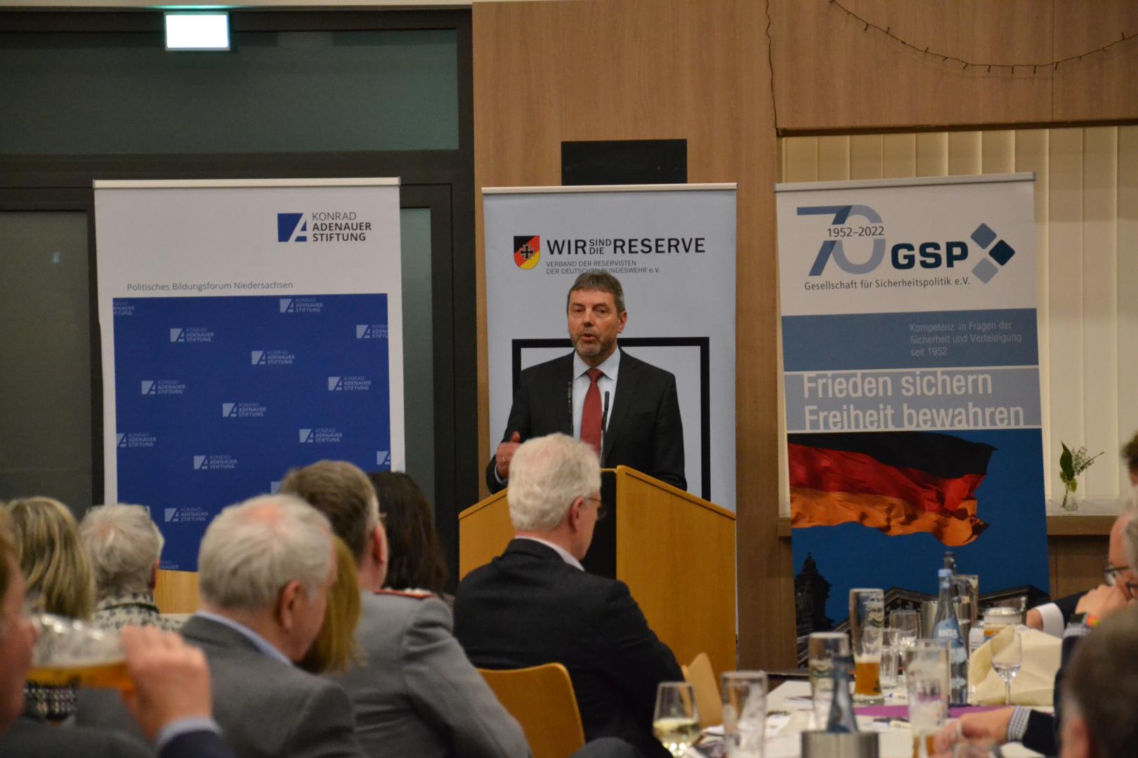 Die von der Bundesregierung nun bereitgestellten 100 Mrd. Euro seien „notwendig, aber nicht hinreichend“ um die Sicherheit der Bundesrepublik Deutschland zu gewährleisten. Es müsse an einem gesamtgesellschaftlichen Verständnis für Sicherheitspolitik gearbeitet werden, es brauche eine gesamtstaatliche Verteidigungsstrategie und sinnvolle Rüstungsinvestitionen. Dazu sprach sich General Binder deutlich für die Einrichtung eines Nationalen Sicherheitsrates aus.