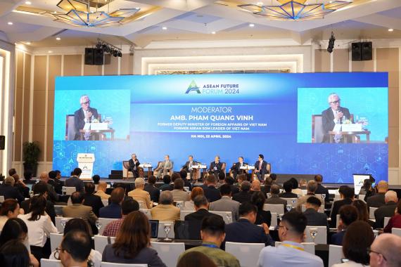 Ngày 23/4, tại Hà Nội, Diễn đàn Tương lai ASEAN 2024 (AFF 2024) đã bế mạc sau một ngày thảo luận hiệu quả. Trong bài phát biểu bế mạc, Bộ trưởng Bộ Ngoại giao Bùi Thanh Sơn cho biết những thảo luận chuyên sâu tại sự kiện đã mang lại cho các nước trong khu vực và các bên liên quan có những hiểu biết sâu sắc có giá trị để suy ngẫm và tái khẳng định tầm quan trọng của những nỗ lực tập thể trong việc định hình một tương lai tươi sáng hơn cho cộng đồng ASEAN. Bộ trưởng Ngoại giao bày tỏ sự lạc quan về định hướng phát triển của ASEAN, lưu ý rằng các cuộc thảo luận đã thu hút một số lượng đáng kể các nhà hoạch định chính sách và doanh nghiệp tìm hiểu và đề xuất các giải pháp khả thi, trong đó một số đề xuất các cách tiếp cận độc đáo nhằm thích ứng và giải quyết các thách thức khu vực.