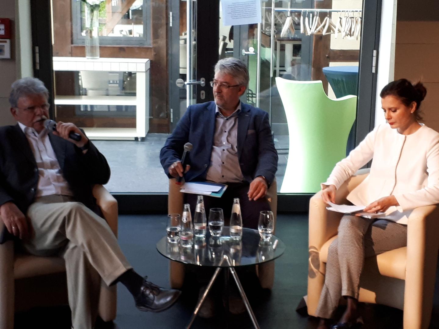 Rainer Dellmuth im Gespräch mit Schülern.