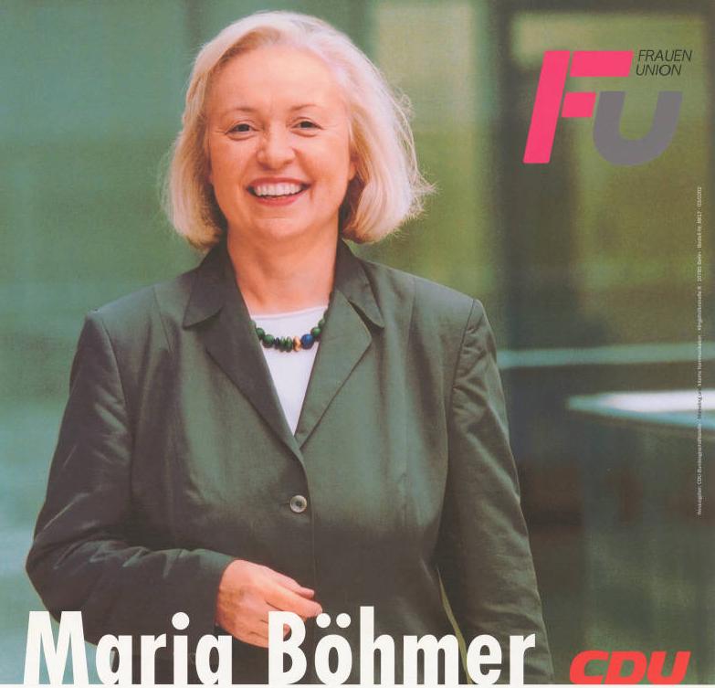 1996 führt die CDU für zunächst fünf Jahre eine Quorumsregelung ein, nach der Frauen an Parteiämtern in der CDU und an öffentlichen Mandaten mindestens zu einem Drittel beteiligt sein sollen. In ihrem ersten Jahr als Vorsitzende der Frauen Union erkämpft Böhmer 2001 die Entfristung des Quorums und erzielt eine Satzungsänderung.