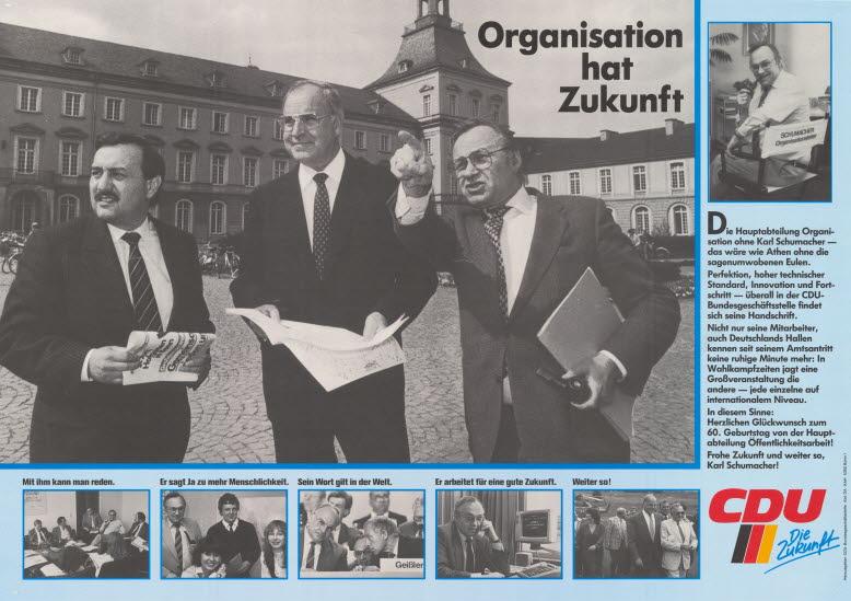Mit der Wahl von Helmut Kohl am 12. Juni 1973 zum Parteivorsitzenden musste das Image-Tief der CDU überwunden werden. Dazu erfuhr das Konrad-Adenauer-Haus eine personelle und organisatorische Neuorientierung. Drei Hauptabteilungen wurden gebildet: HA I-Verwaltung, Personal und Organisation, HA II-Politik, Dokumentation und Information. Hauptabteilung III-Presse und Öffentlichkeitsarbeit, deren Leiter Peter Radunski wurde. Umgehend vorgelegt wurde die Konzeption für eine umfassende Public-Relationskampagne der CDU für das zweite Halbjahr 1973. Zielsetzung war eine wesentliche Imageverbesserung parallel zur Vorbereitung des 22. Bundesparteitages in Hamburg. In der öffentlichen und in der veröffentlichten Meinung hatte die Union die sachliche Mitsprachepräsenz verloren. Wer CDU sagte, meinte Personaldiskussion. Die CDU wurde nicht als programmatische Kraft erlebt, schon gar nicht als Partei mit begründetem Führungsanspruch. Sachpolitische Aussagen verpufften, weil eine überzeugende Personalisierung nicht möglich war. Darum beschloss am 1. Oktober 1973 das CDU-Präsidium eine neue Aufgabenverteilung. Durch Sachkompetenz sollte die neue Parteiführung an Autorität gewinnen. Personen sollten für politische Themen stehen. Ein Personalfaltblatt „Zur Person“ diente zur innerparteilichen Information, als Beilage in Publikationen der Landes- und Kreisparteien und zur Ausstattung der Kreisgeschäftsstellen. Der Presse konnten so bei allen Veranstaltungen und Reisen Kurzporträts der jeweiligen Präsidiumsmitglieder mit einem Life-Foto und dem offiziellen Porträt übergeben werden.