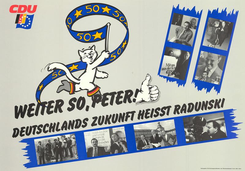 Radunskis organisatorische Fähigkeiten, wissenschaftliche und politische Qualitäten waren 1971 für Bundesschatzmeister Walther Leisler Kiep Anlass, den unabhängigen Kopf in die CDU-Bundesgeschäftsstelle nach Bonn zu holen.
