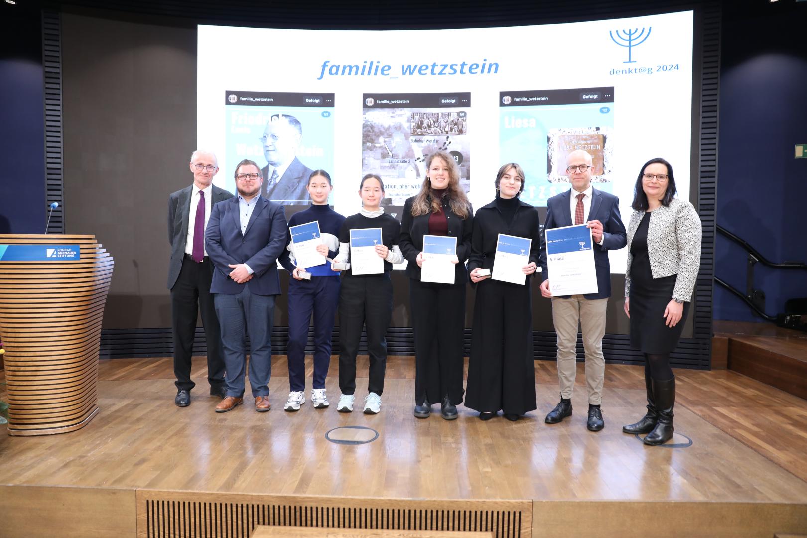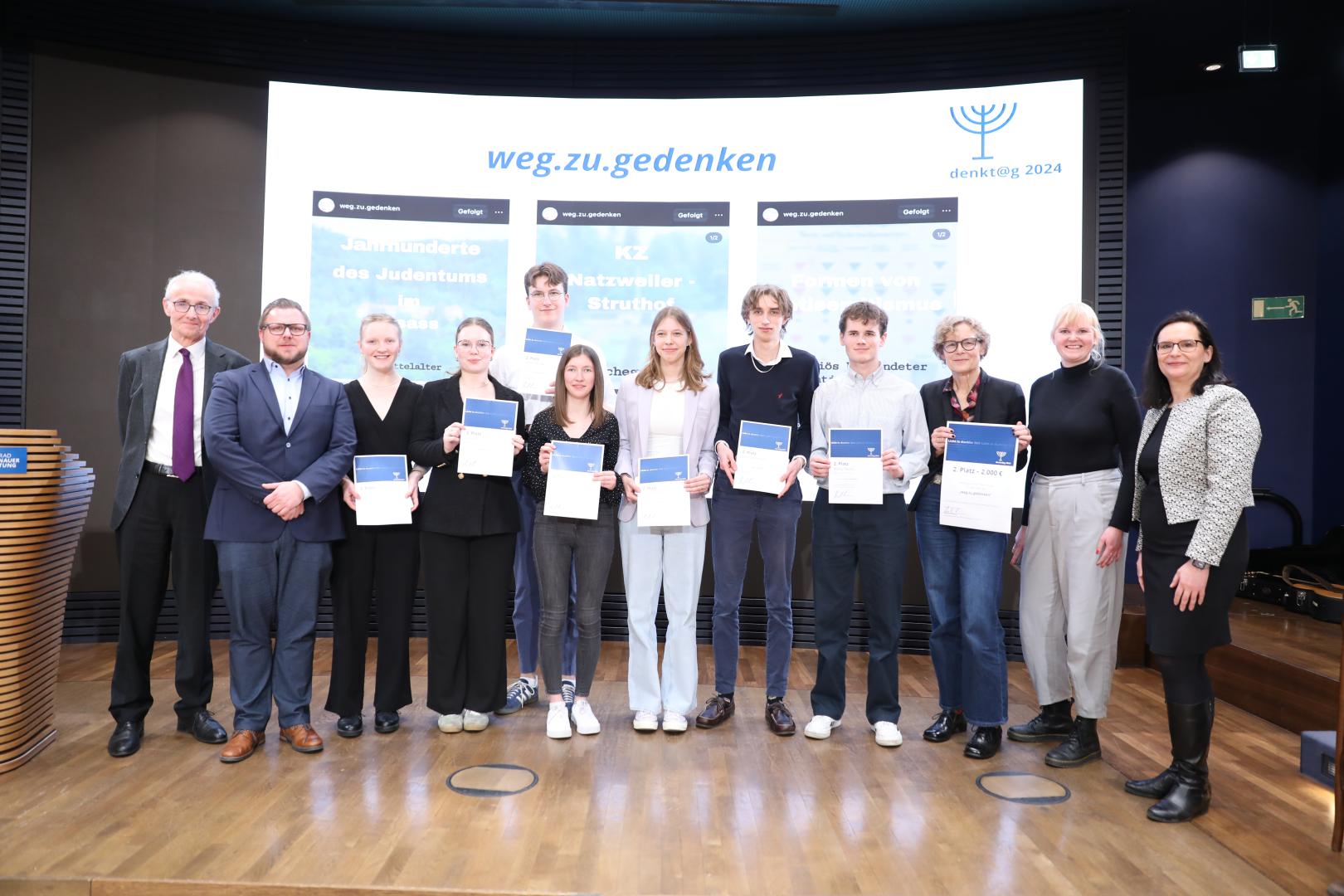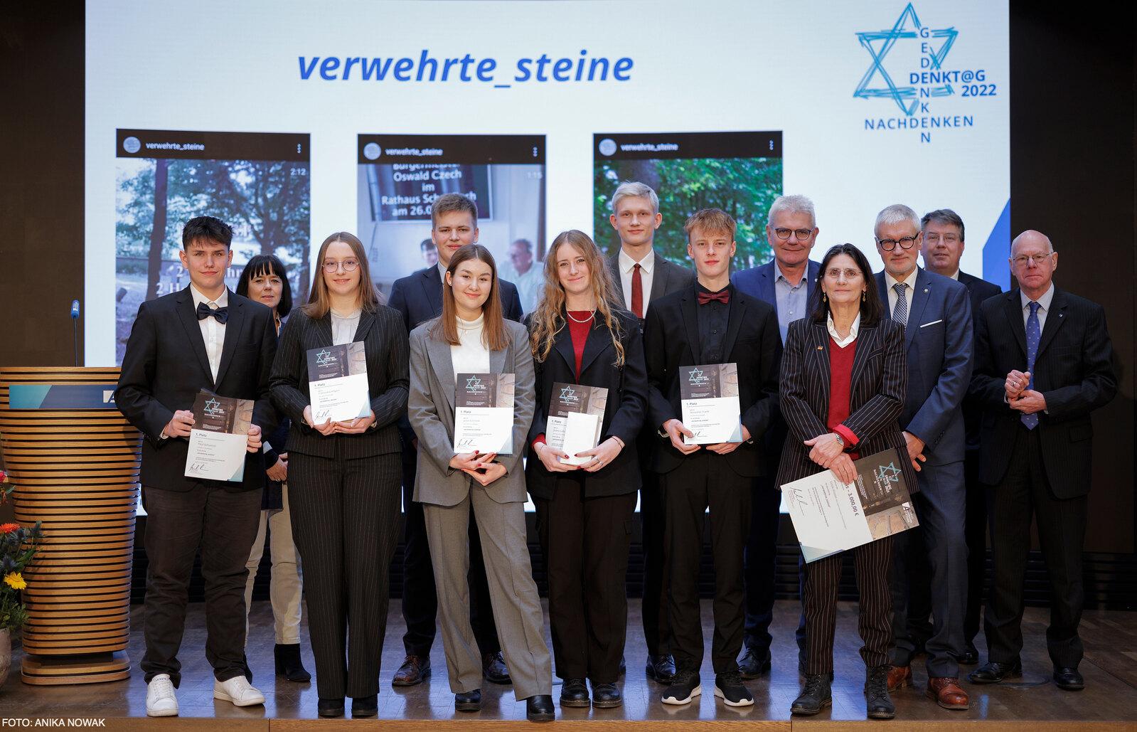 Der mit 3.000,- € dotierte erste Platz ging an die Schüler des Städtischen Gymnasiums Herten in Nordrhein-Westfalen mit ihrem Projekt „Zweitzeugen“.