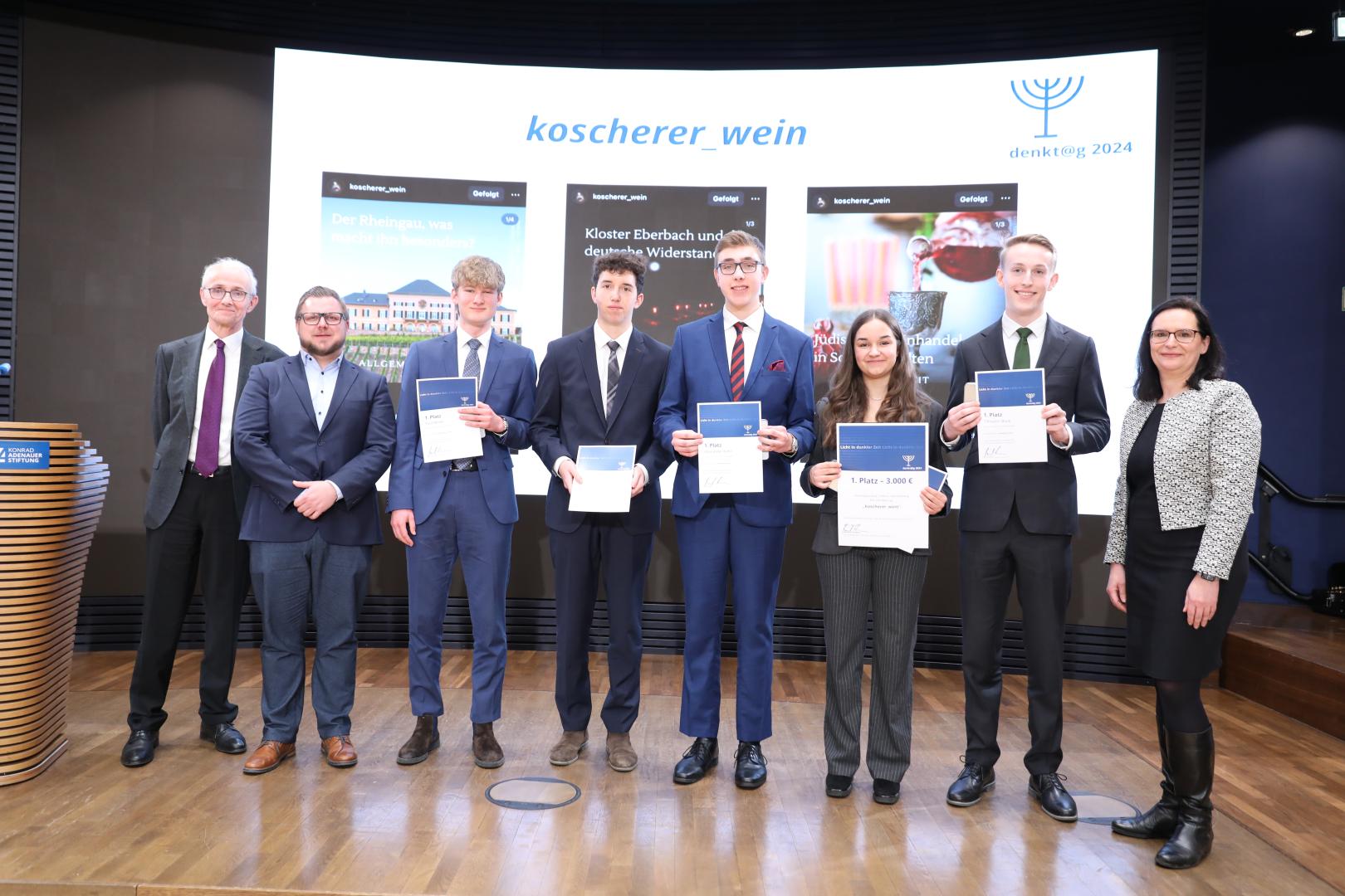 Der mit 3.000 Euro dotierte erste Platz ging an fünf Schülerinnen und Schüler der Internatsschule Schloss Hansenberg mit ihrem Projekt „Koscherer_Wein“.