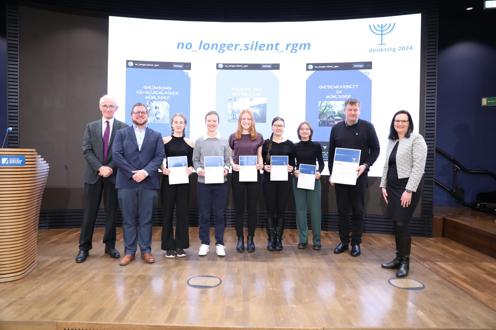 Der vierte Platz ging an Schülerinnen des Kurses Politik und Zeitgeschichte des Ruperti Gymnasiums Mühldorf am Inn für das Projekt „no_longer.silent_rgm“.