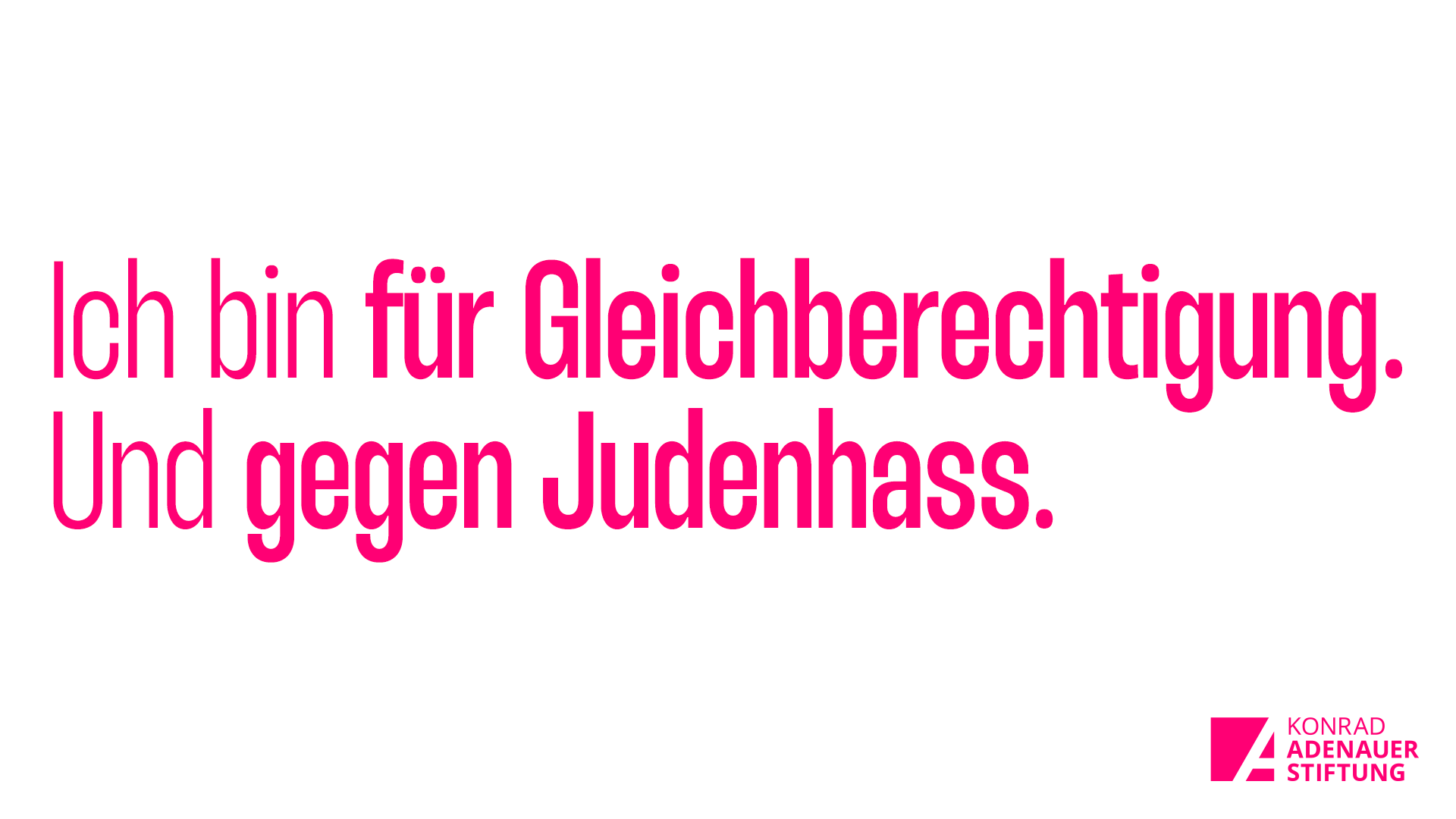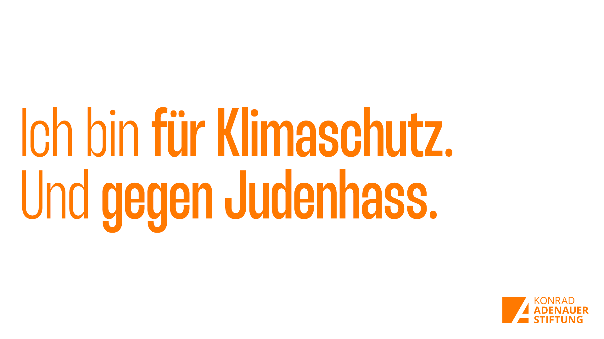 Antisemitismus gibt es nicht nur an gesellschaftlichen Rändern. Der Hass auf Jüdinnen und Juden äußert sich auch in vielen alltäglichen Kontexten und modernen Bewegungen – oft unbemerkt oder unreflektiert. Der Kampf gegen den Klimawandel, gegen gesellschaftliche Ungerechtigkeiten und gegen Diskriminierung, aber auch der Einsatz für Glaubens- und Meinungsfreiheit sind wichtige politische und gesellschaftliche Anliegen. Judenhass und Antisemitismus haben hier keinen Platz. Die Konrad-Adenauer-Stiftung will mit ihrer Kampagne #GegenJudenhass deutlich machen, dass Bekenntnis und Einsatz für eine bessere Politik und Gesellschaft immer auch Bekenntnis und Einsatz gegen Antisemitismus brauchen. Mehr denn je gilt, was eigentlich selbstverständlich sein sollte: Wer für Nachhaltigkeit, Gerechtigkeit und Demokratie ist, ist auch #GegenJudenhass.