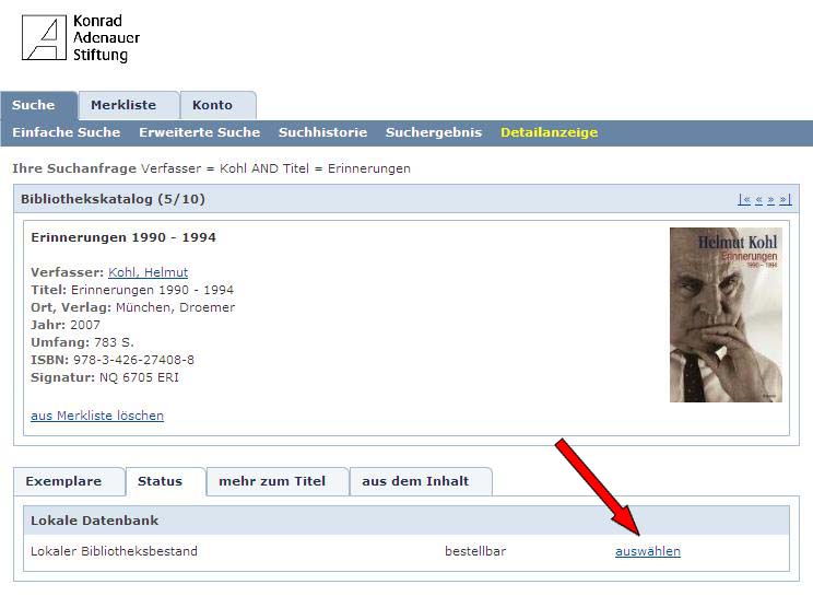 Von den KAS-Standorten Berlin, Eichholz und Wendgräben, sowie den Bildungswerken können Mitarbeiterinnen und Mitarbeiter online Bücher und andere Medien aus dem Bestand der Bibliothek bestellen.