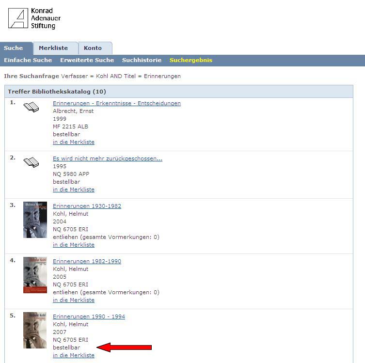 • Medien, die zu den Sammelgebieten Christliche Demokratie oder Konrad-Adenauer-Stiftung gehören, sind mit Hinweisen auf Rezensionen versehen, soweit die Rezensionsorgane im Bestand der Bibliothek sind.
